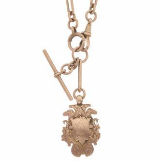 28 A late Victorian 9ct gold Albert chain, with lobster clasp, suspending a T-bar and a heart-shape fob, fob stamped 9c, length of Albert chain 47cm, 18.5g £300 - £500