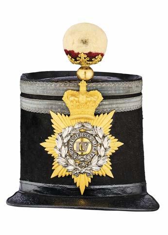 RETAILED BY CUFF & SON, 18 COCKSPUR ST., LONDON, NOS. 19,041.R. AND B.3635., CIRCA 1856 with blued octagonal sighted barrel (some loss of finish on the right side) struck with London proof marks, blued top-strap engraved with retailer’s details, serial numbered cylinder, border engraved blued frame engraved ‘Adam’s Patent’ and with serial numbers along the right side, blued safety-stop, arbor pin with threaded catch, rammer numbered ‘5188’ on the inside, blued trigger-guard and ovoidal butt-cap, the latter engraved with owner’s name ‘John Gore, 10th Hussars’, chequered figured rounded butt, and much original finish: in original oak case fitted and lined in plum velvet with accessories including James Dixon & Sons powder-flask (nozzle missing) with split-ring for suspension and some original finish, brass bullet mould, and other items, the exterior of the lid with circular vacant escutcheon , 14.6 cm barrel