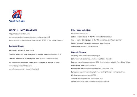 Newcastle-Gateshead: www.northeastfor2012games.com Surrey: www.gosurrey.info/olympic-road-cycling/olympic-cycling-road-race Windsor: www.windsor.gov.uk/2012 Glasgow: www.seeglasgow.com/london2012 Cardiff: www.visitcardiff.com/the-olympics-in-cardiff