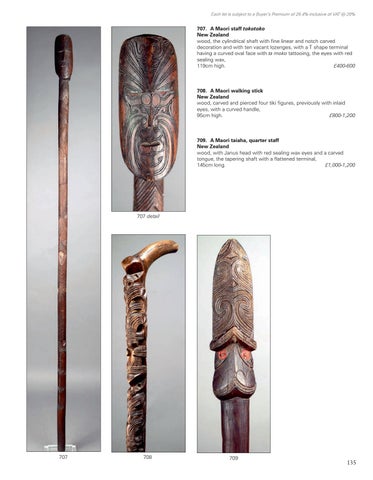 707. A Maori staff tokotoko New Zealand wood, the cylindrical shaft with fine linear and notch carved decoration and with ten vacant lozenges, with a T shape terminal having a curved oval face with ta moko tattooing, the eyes with red sealing wax, 119cm high. £400-600