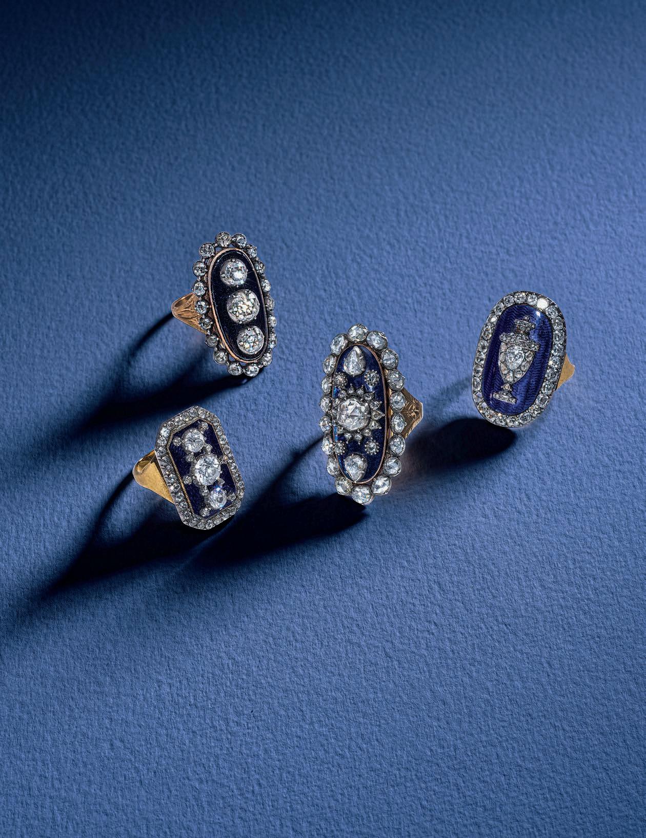A legendary collector and dealer of immaculate taste, his discerning and eclectic jewellery collection ranges from marvellous examples of fine French eighteenth century jewellery through to stylish Art Deco, from tiaras of cut steel to magnificent mourning rings. Each piece meticulously chosen. An always elegant figure, he was well known in antique jewellery circles for his exquisite taste (and ferocious bargaining skills.)