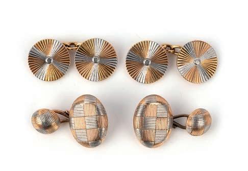 6 A collection of cut steel buttons and a pair of cufflinks 18th/19th century, comprising: 54 cut steel shirt buttons of various designs, including matching groups of eleven and fourteen, largest 3.7cm diameter; together with a pair of cufflinks £200-300