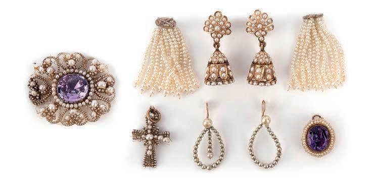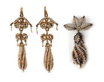 Pearls known and guaranteed to be cultured or natural are described as such in the cataloguing. Where the origin of a pearl is unknown and not guaranteed, it is described simply as a ‘pearl’, and it will be specified in the cataloguing as untested. Pearls described in this way are guaranteed to be pearls and not simulants, but their origin is not guaranteed as either natural or cultured. Items described as ‘seed pearls’ have also not been tested and cannot be guaranteed as natural pearls.