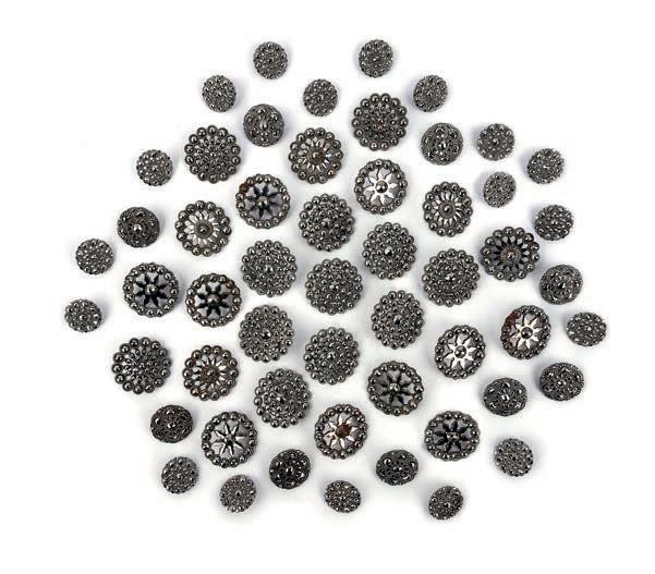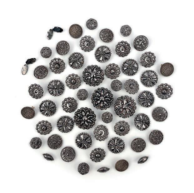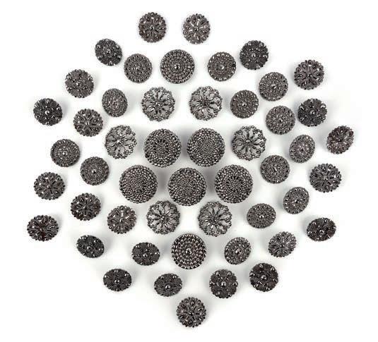 5 A collection of cut steel buttons, 18th/early 19th century, comprising: 54 cut steel shirt buttons of various designs, including matching groups of eighteen, nine and ten, largest 3.7cm diameter £200-300