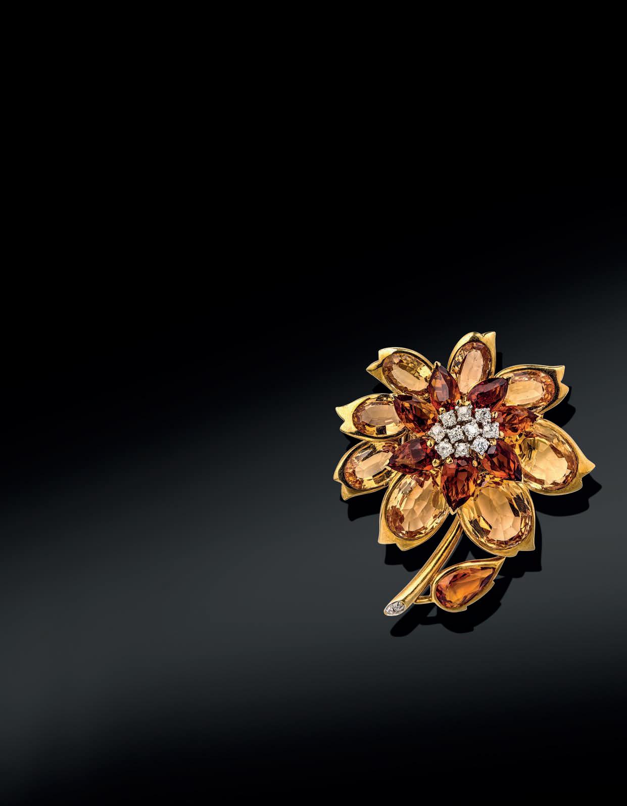 A citrine and topaz gold flower brooch by Cartier
