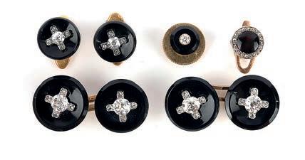 36 Five paste hair ornaments and a pair of paste buttons, 19th century, comprising: