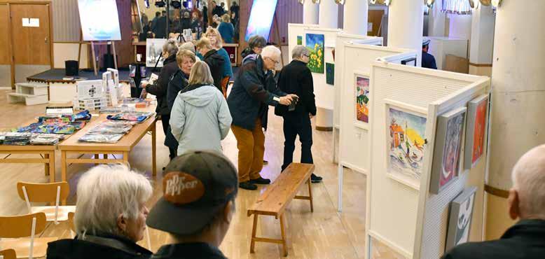Vernissagedagen hälsade konst föreningens ordförande Ullabritta Engström välkommen till besökare och de långväga utställarna. En ny utkommen bok med dagsboksberät telser från Ingrid Roths vistelse i In dien fanns på bordet.