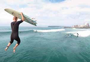 Gesäumt von hochwertigen Hotelanlagen sind die Sandstrände von Umhlanga in Durbans Norden ein idealer Ort für Urlauber, die in der Sonne entspannen, surfen oder entlang der Promenade flanieren wollen.
