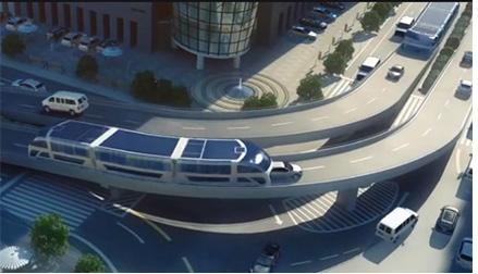 The Transit Elevated was a proposed new bus concept where a guided bus strad dles above road traffic, giving it the alternative names such as straddling bus, straddle bus, land airbus, or tunnel bus by international media. straddles on two road lines. can carry 1200 passengers. allows to use the space under it.powered by electrucity or solor power.can reach speeds up to 37mph(60kph)6m wide and 4.5m high.solve the issues of less space. indicate light when any ob stacles are in the path of the vehicle.