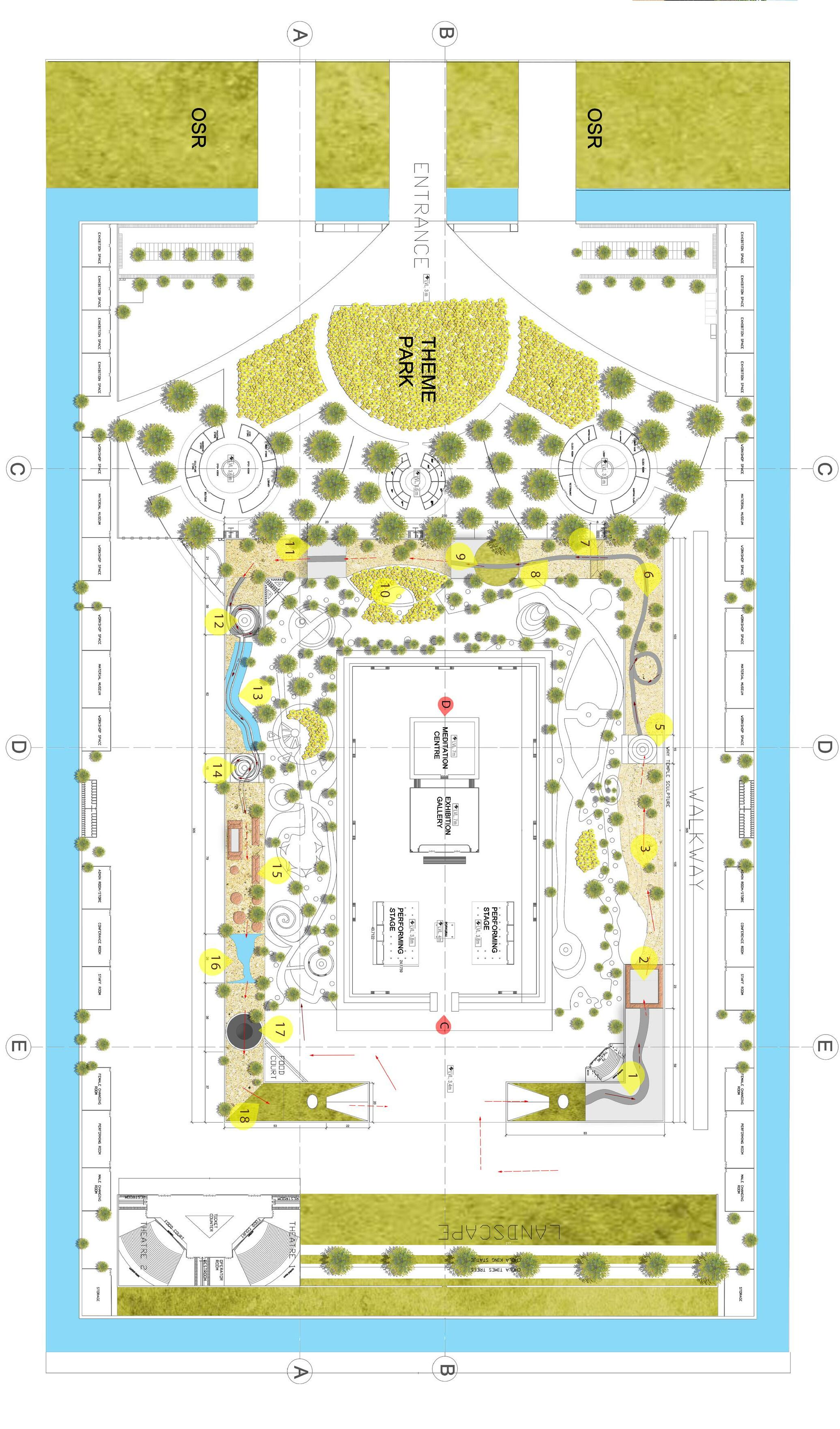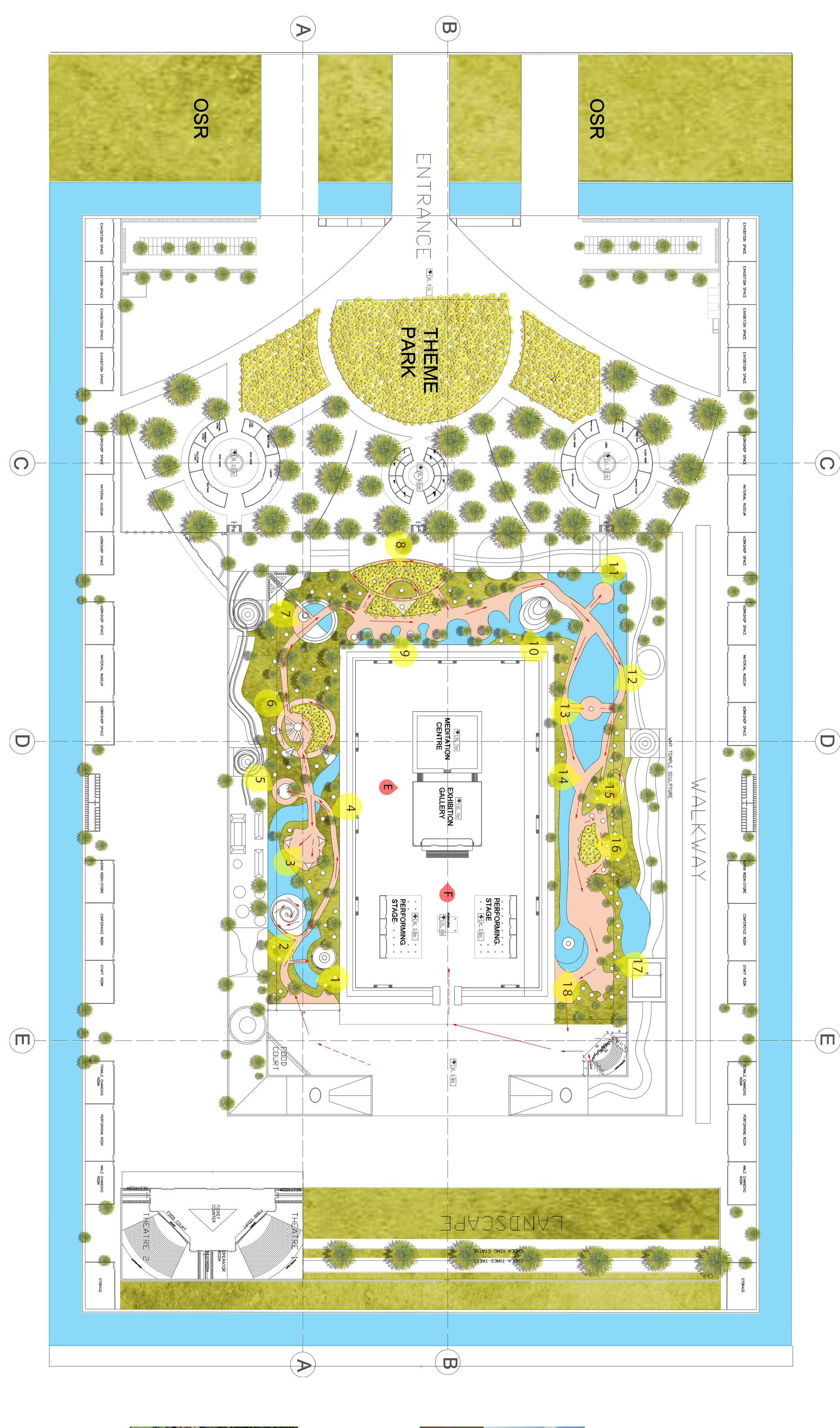 This space is mainly admin and entrance area which has ticket counter, clock room, admin block, restaurant, park, focus point, shopping zone.