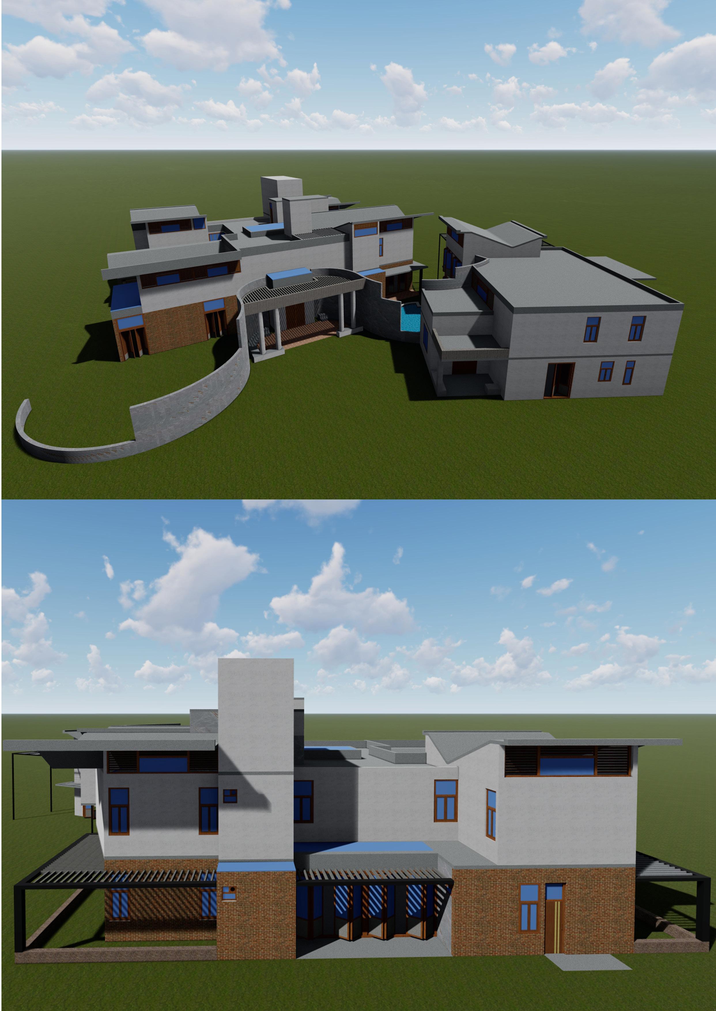 Land use: primary residential . Area: 8.6 acres Soil type: red soil Family present: 597 DESIGN CONCEPT:dividing the two floor and making them into duplex house for space management. the concept for the arrangement is body parts head,body and tail.