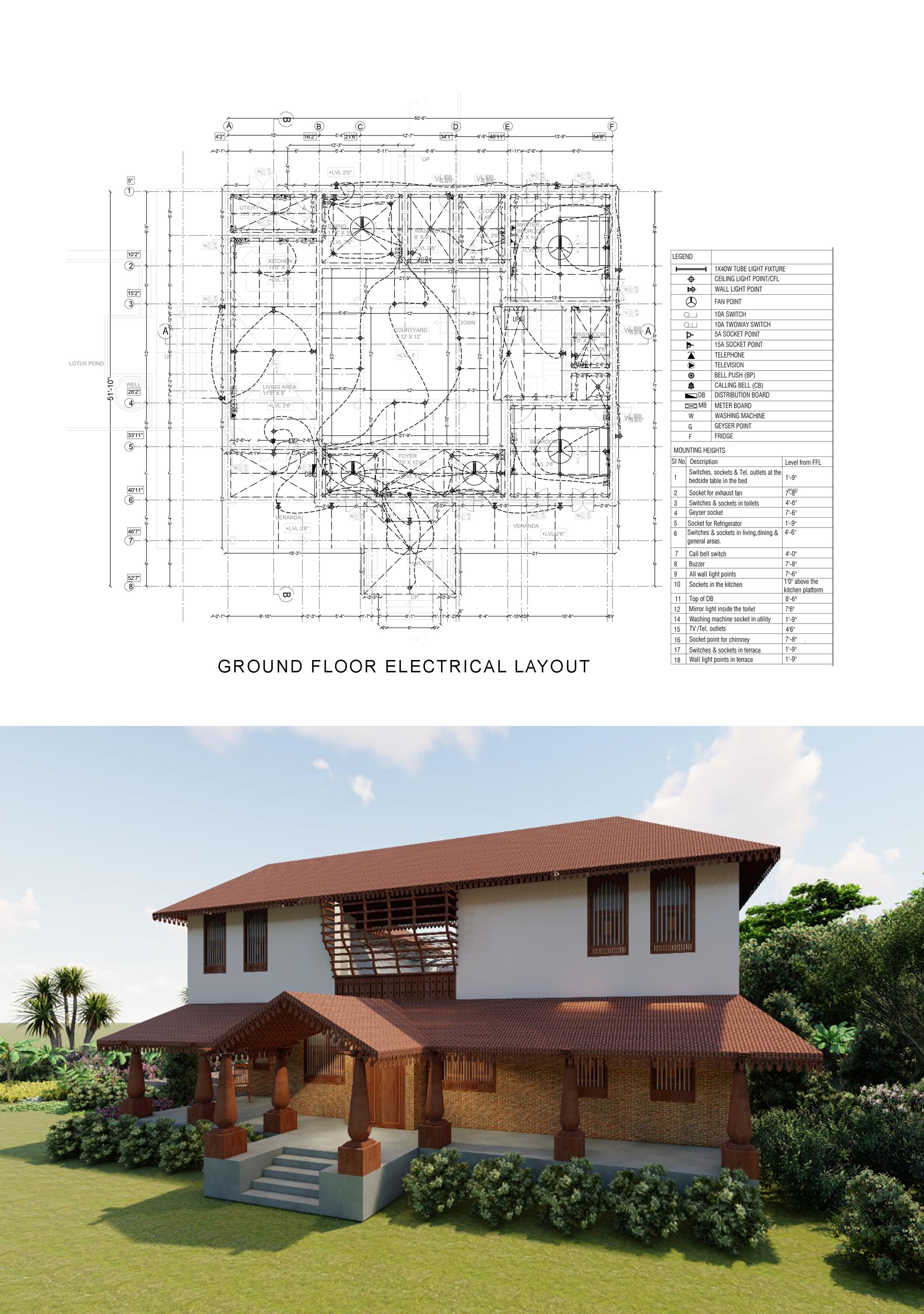 STRUCTURE:I designed this house with proper structure detail and column layouts,I used substainable materials like brick,lime,filler slabs and athangudi tiles which is locally avail able.