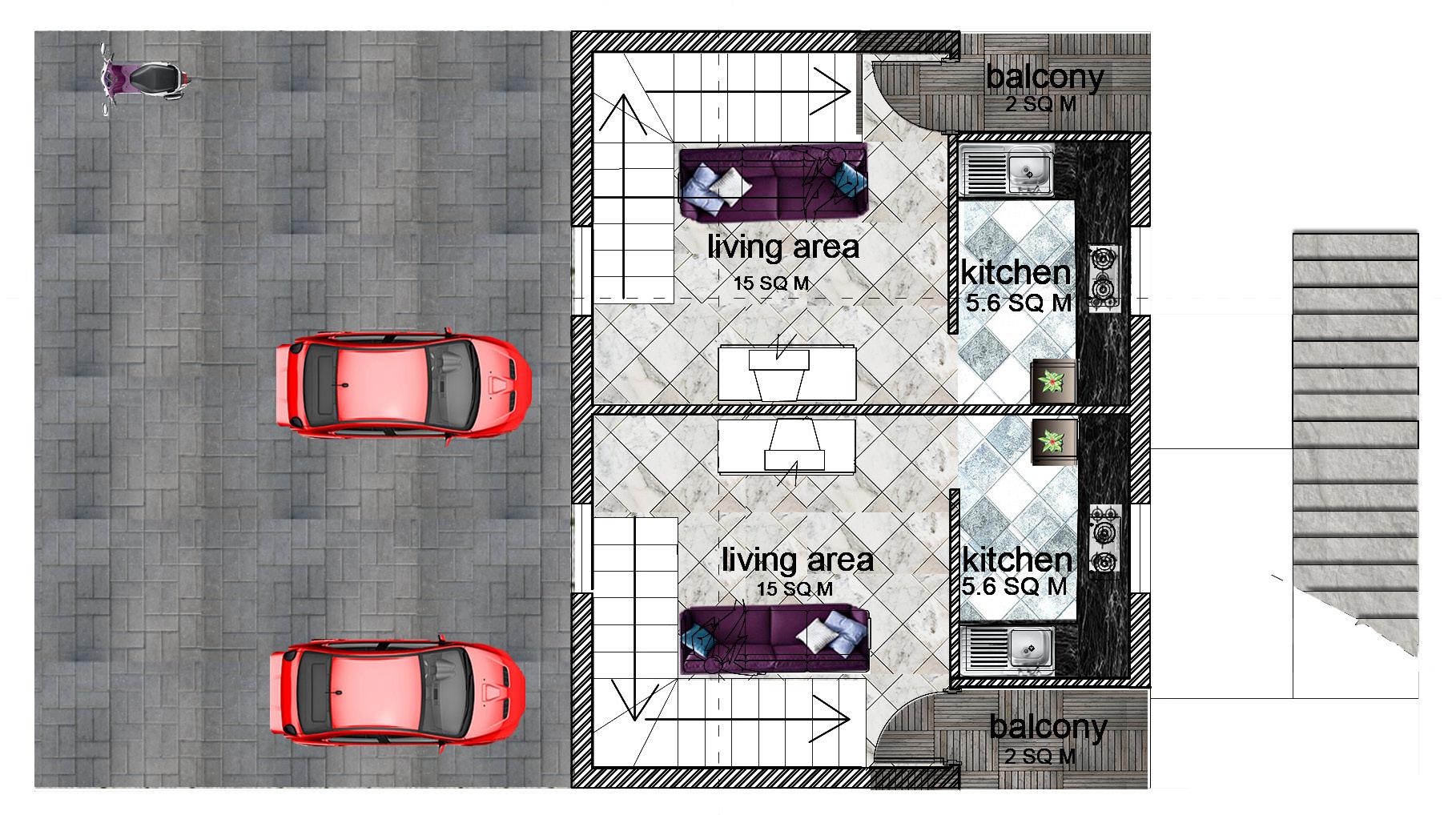 +15'0" SFL +15'1/4" FFL BALCONY +15'0" SFL +15'2" FFL BEDROOM +14'2" SFL +15'1 1/4" FFL RESTROOM 1.2X2.5 +4'0" UFL +4'2" FFL 3.3x5.3 LIVING ROOM CAR PARKING +2'6" UFL +2'8" FFL + 1'-6" LVL + 1'-6" LVL Door Door Door