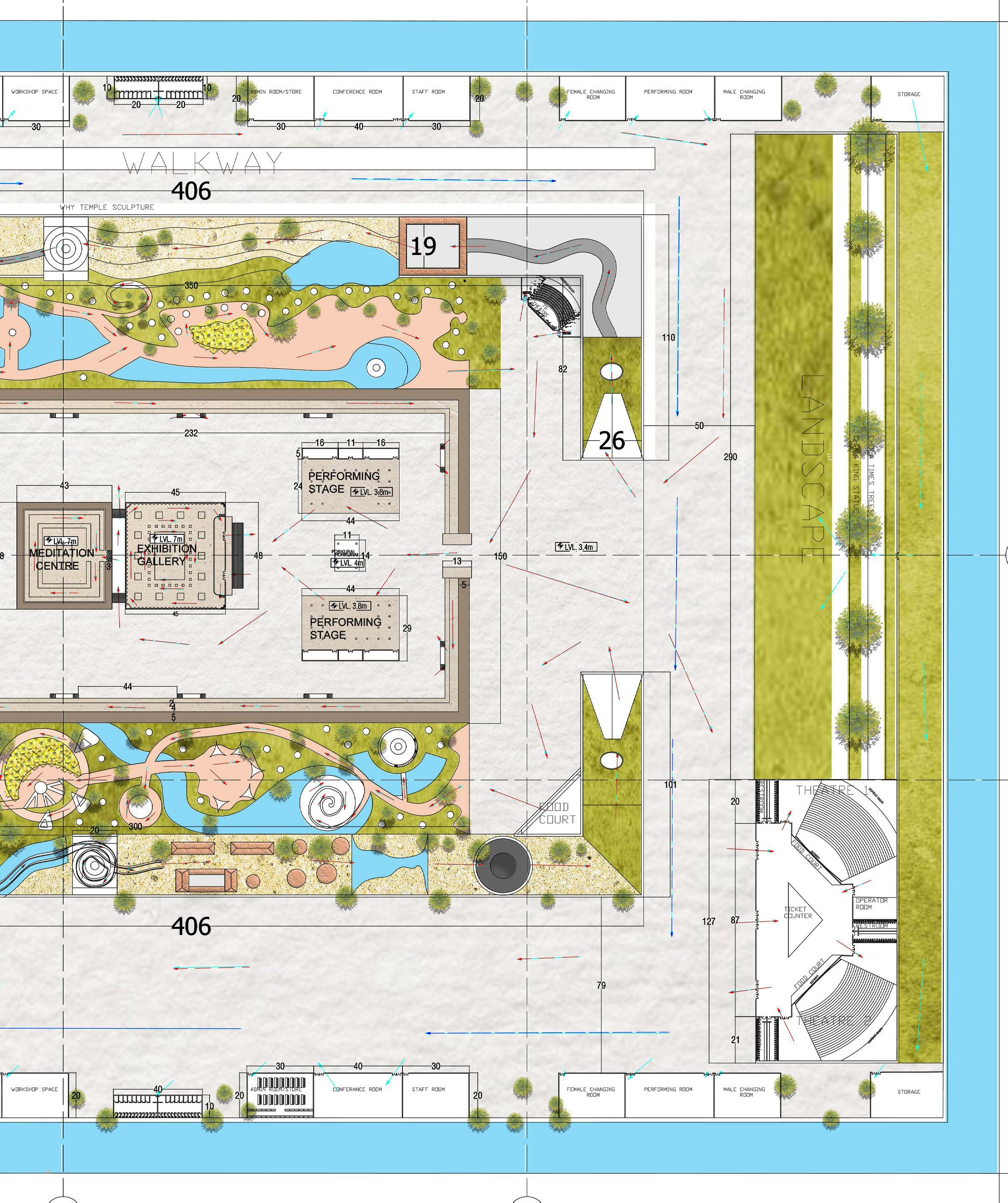 Consists of meditation space, exhibition space, performance centre, tradition al commercial area and library.