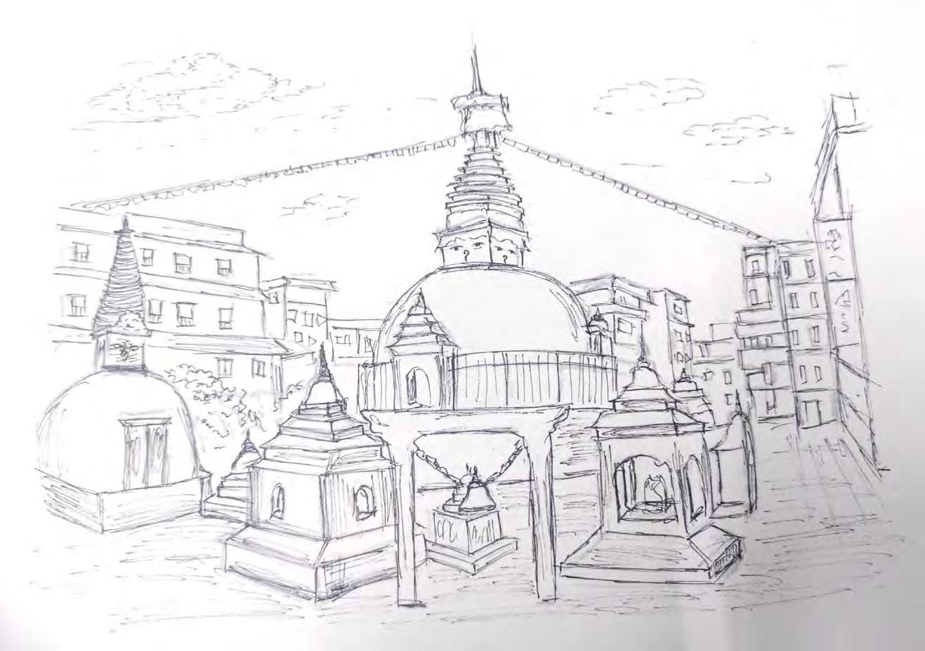 The site is situated 4 km from the city center and is only 10 minutes from the international airport. As for the specified design solving act, the site selected must have the features for incorporating and supporting the design. Kathmandu is a city particularly famous for its ancient architecture, religious monuments, various temples, monasteries, and stupa that adorn the city’s landscape. The site we selected is Boudha as it has its own eco-system of tourism and architecture which supports the theme and vision of this project. As the site surrounding has many features and services including related landmarks like Boudhanath stupa, Taragaon museum, Hyatt regency, etc. that support tourism.