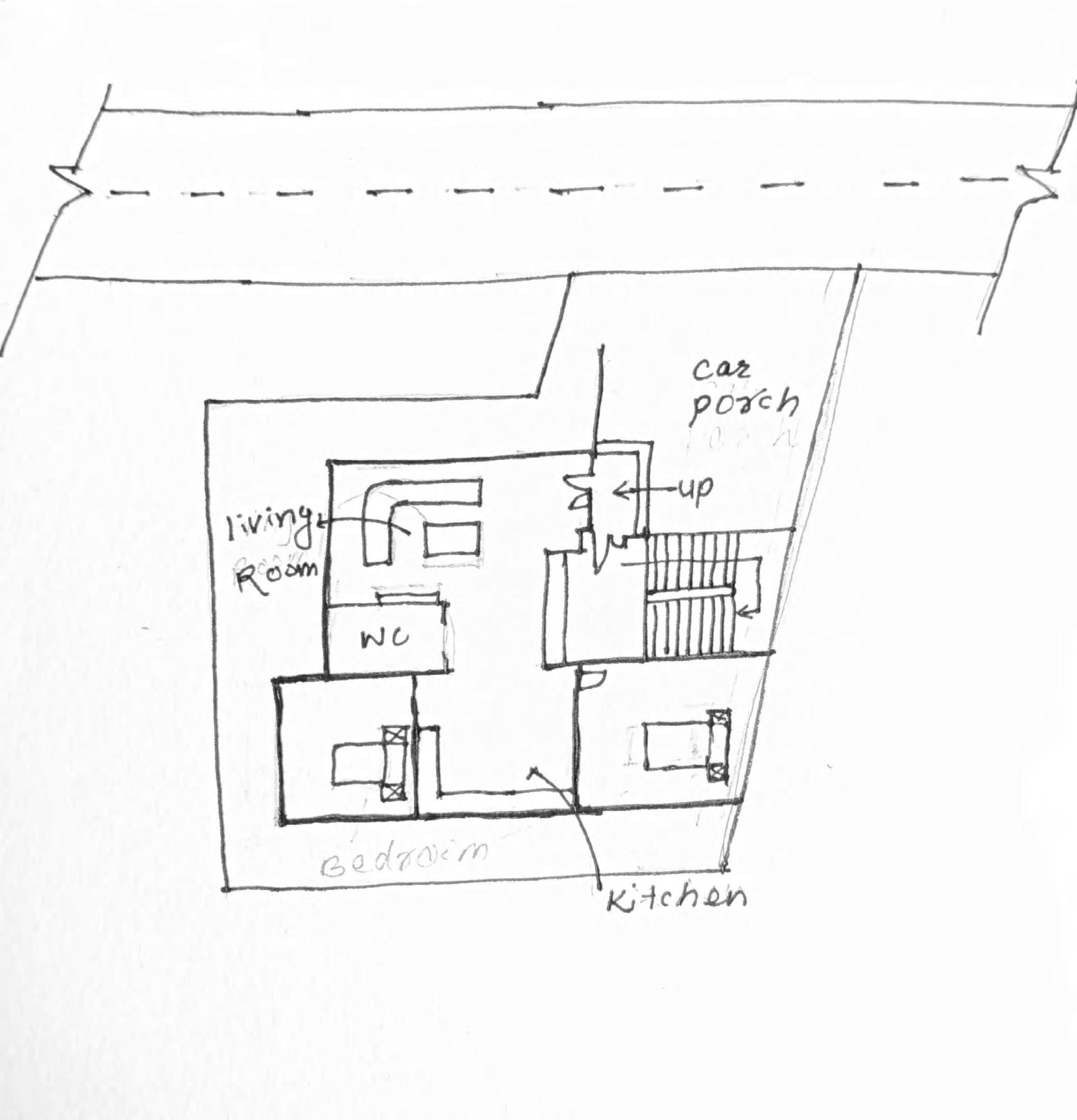 Bedroom 10'-6" X11'-0" Kitchen cum Dining Car porch 10'-9" X15'-0" Up Shoe rack TV Living room Bedroom 13'-0" X17'-9" C.Toilet 11'-6" X12'-7" 6'-10" X5'-5" Up