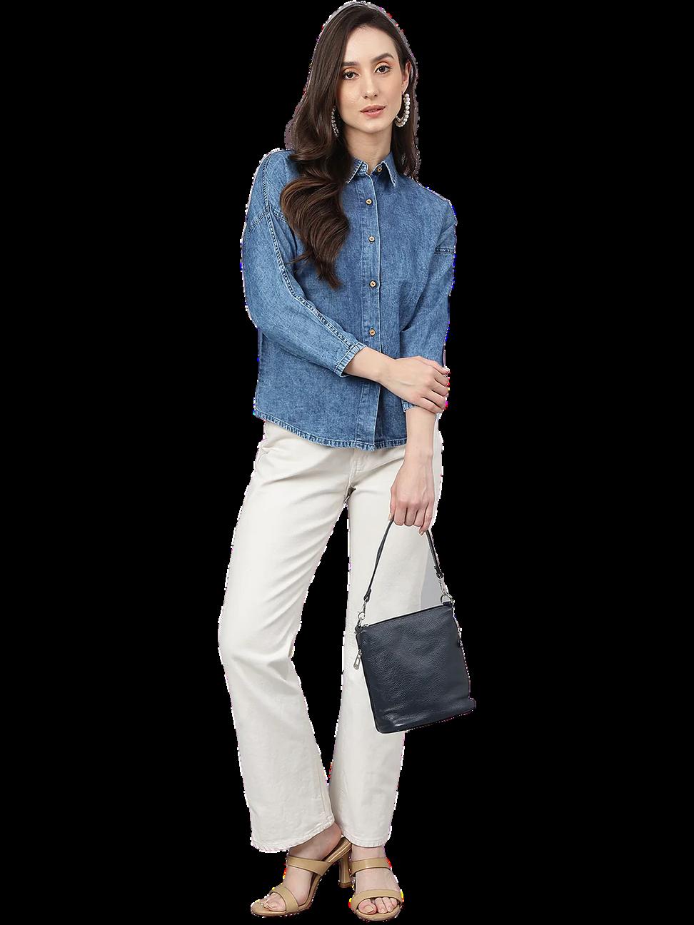 Whether you're in a meeting or just typing away at your desk, you'll look polished and put together. Get ready to feel confident and stylish in the Denim Shirt Top!
