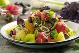 Diese rot-gelb gestreiften Paradeiser schmecken fruchtig-süß und haben ein kräftiges Aroma. Optimal geeignet für Saucen und Aufstriche.