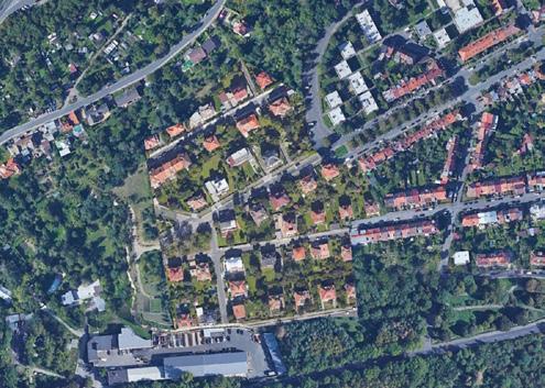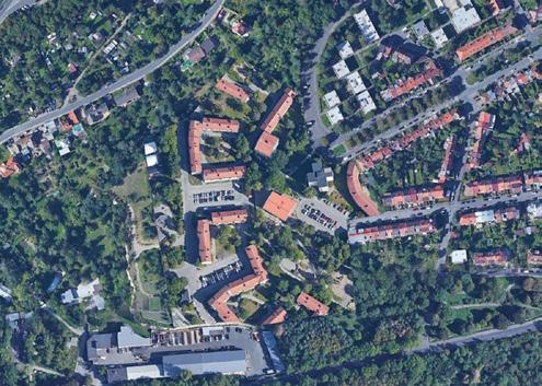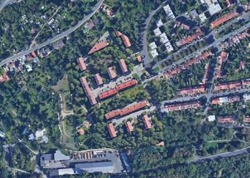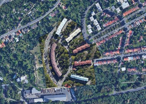 Pro pochopení rozlohy zadané parcely jsem si na začátku semestru vložila na vymezenou oblast různé druhy obytných souborů/čtvrtí. Později jsem si k nim dopočítala orientační hustotu zalidnění.