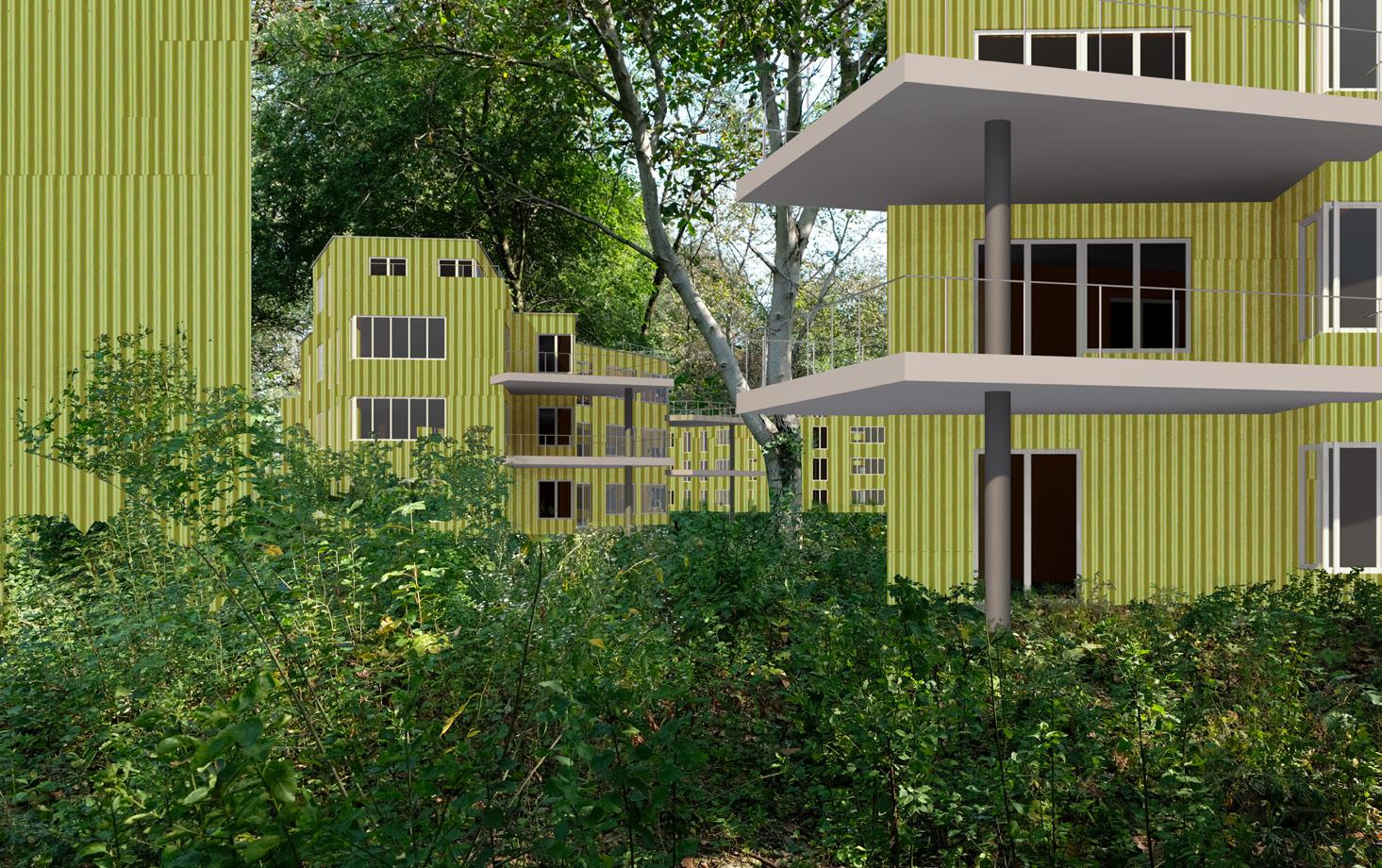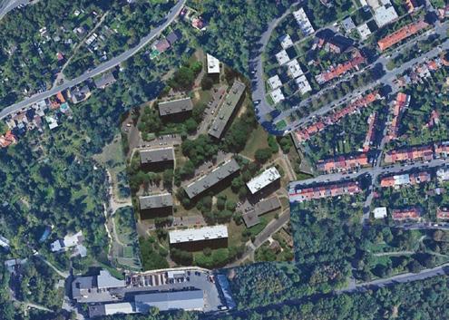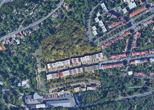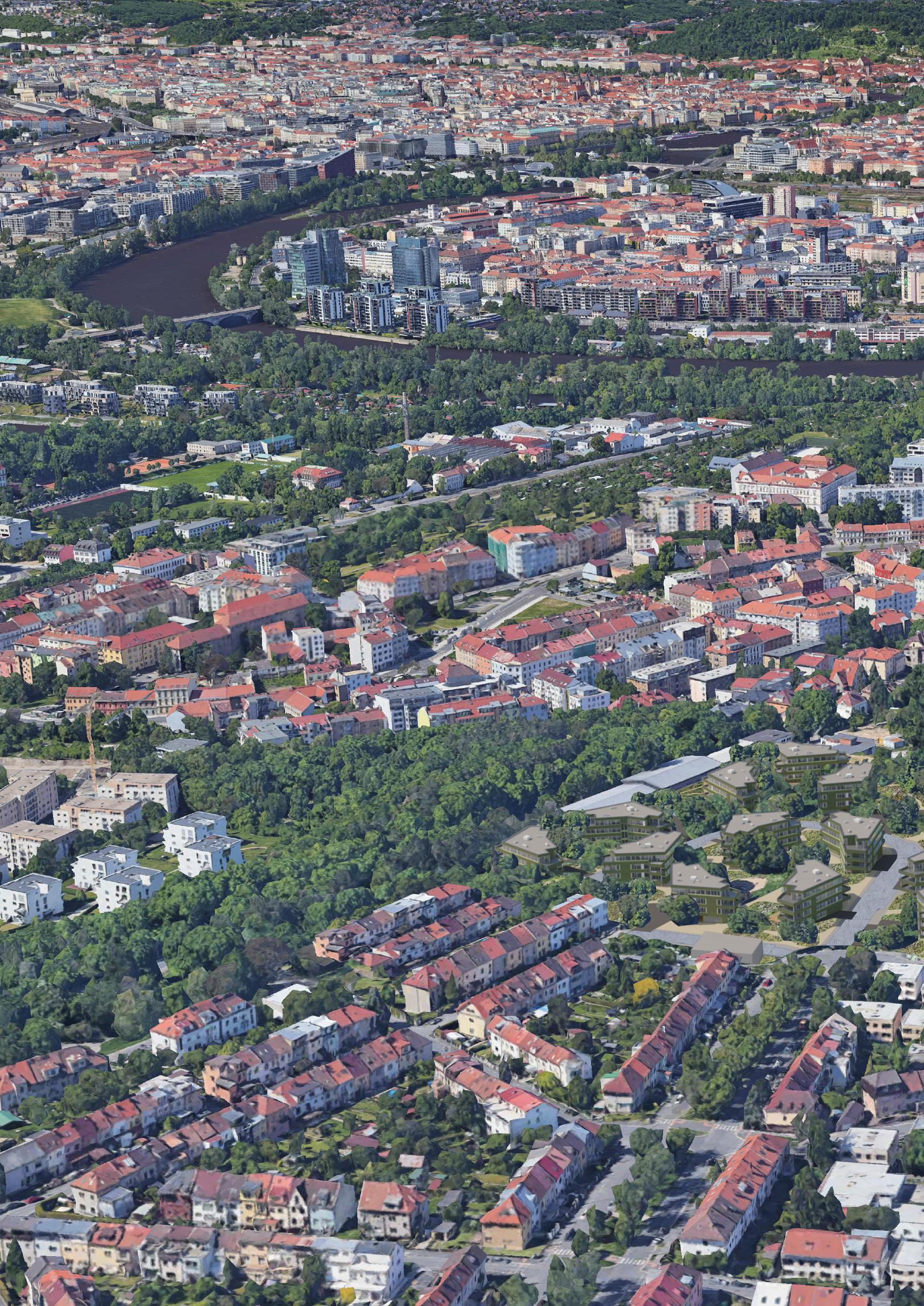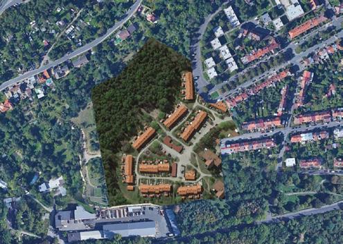 Zadaným tématem diplomové práce je bydlení - hledání zahradního města. Místo hledání zahradního města jsem se však rozhodla hledat město v lese. Bydlení v přírodě namísto bydlení se zahradou. Jako jeden z největších potenciálů parcely totiž vnímám její zarostlost, divokost. Ambice projektu byla do tohoto prostředí navrhnout kvalitní současné bydlení a navazovat spíše než na sousední řadovky právě na stávající přírodu na parcele. Nestavíme na ‚zelené louce‘, ale na parcele ve vnitřní periferii města, která byla zapomenutá tak dlouho, až sama znovu ožila.