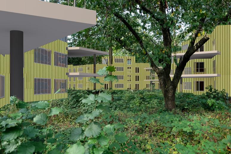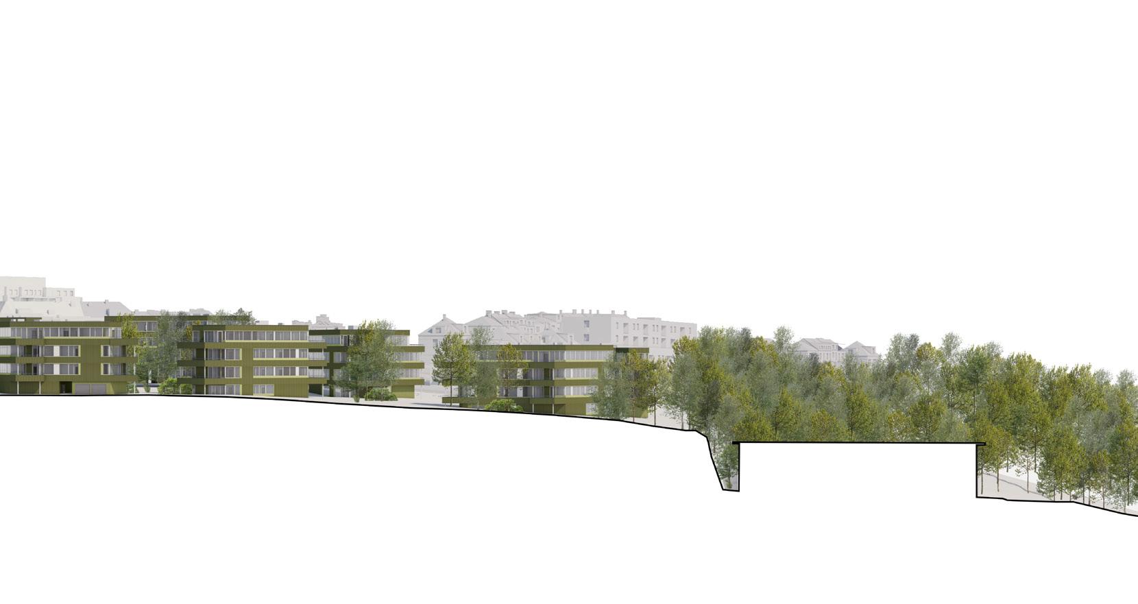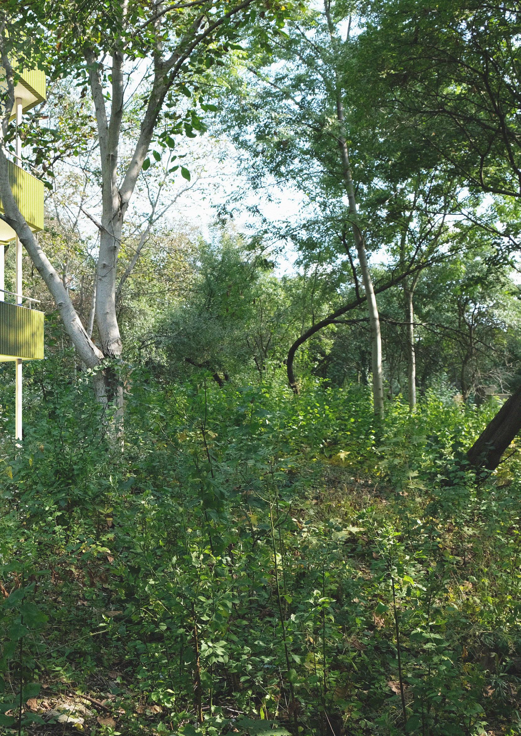 The master’s thesis‘ main topic is housing - searching for a garden city. However, I decided to search for a city in nature instead. I see the wildness of the plot as one of it’s greatest potencials. The ambition of the project was to design a quality housing and keep the current environment we can find on the plot. We are not building on a ‚green field‘, but on a site in the inner periphery of the city that has been forgotten for so long that it has come to life by itself again.