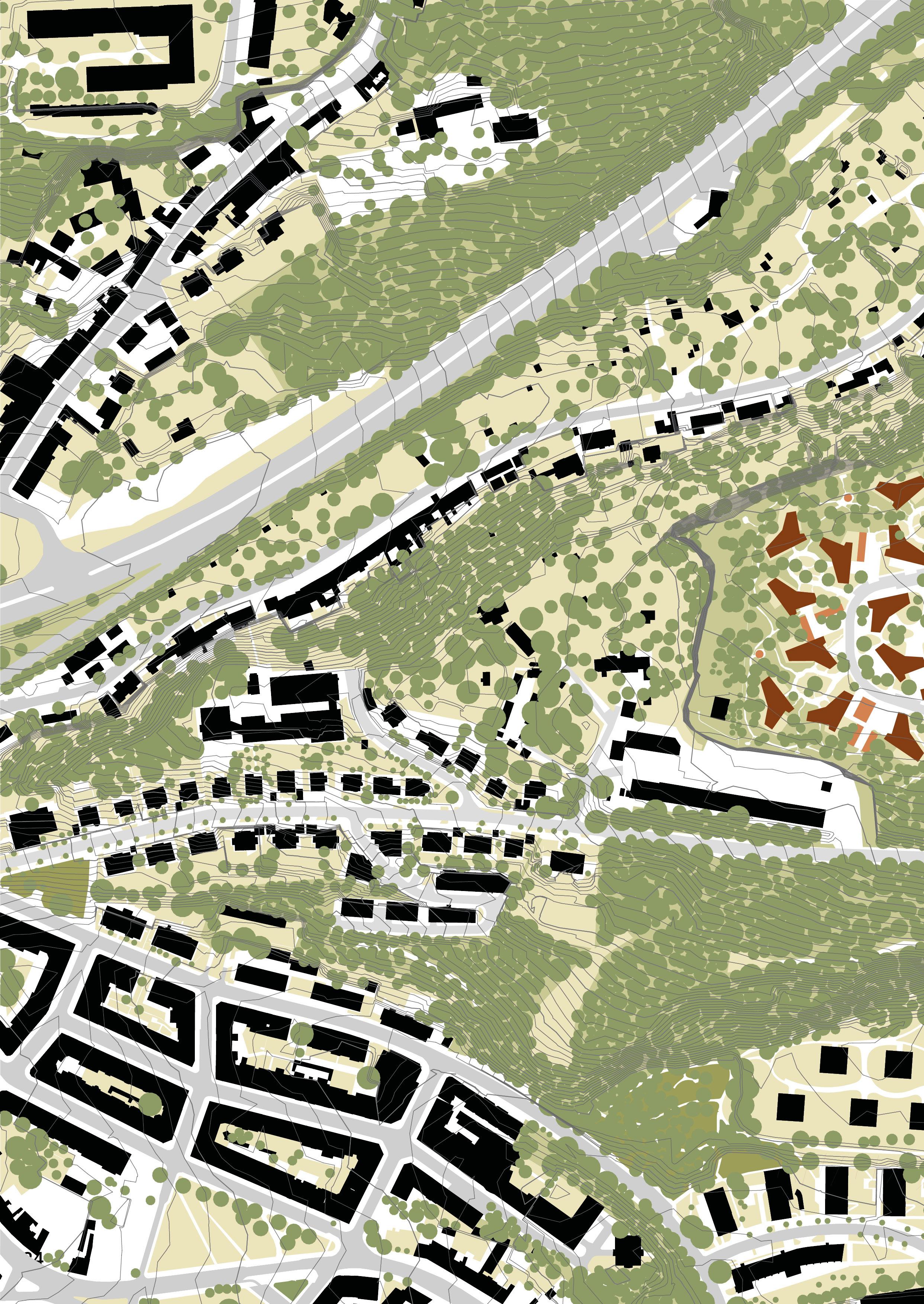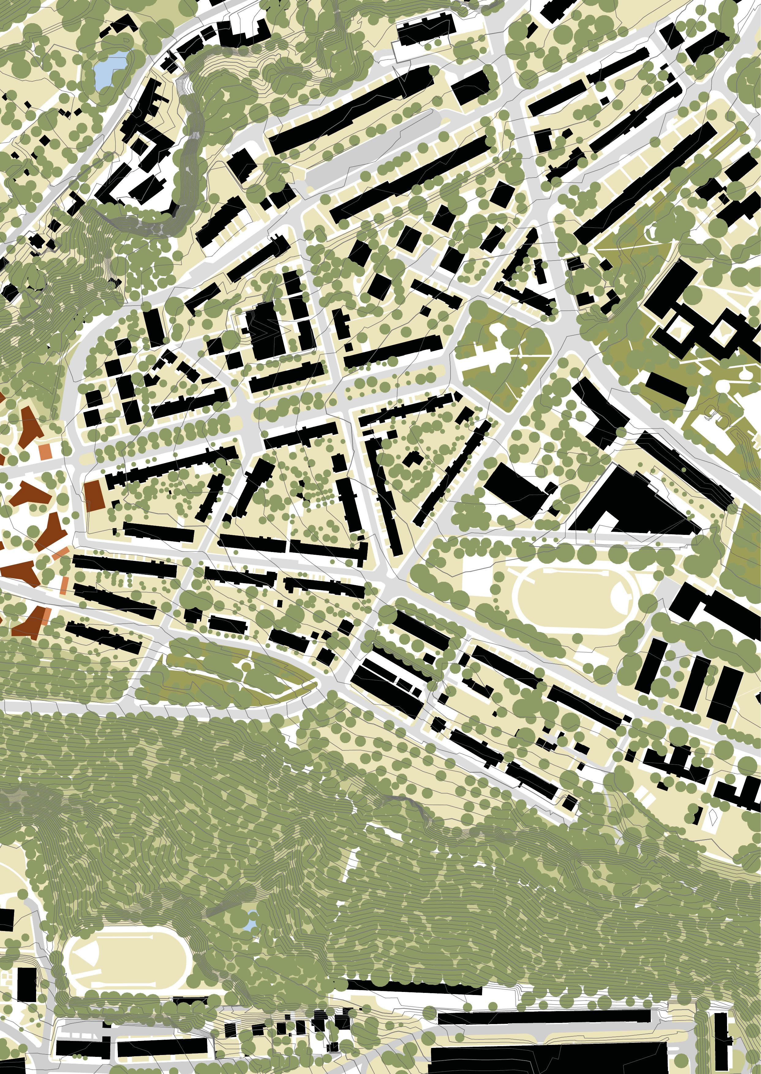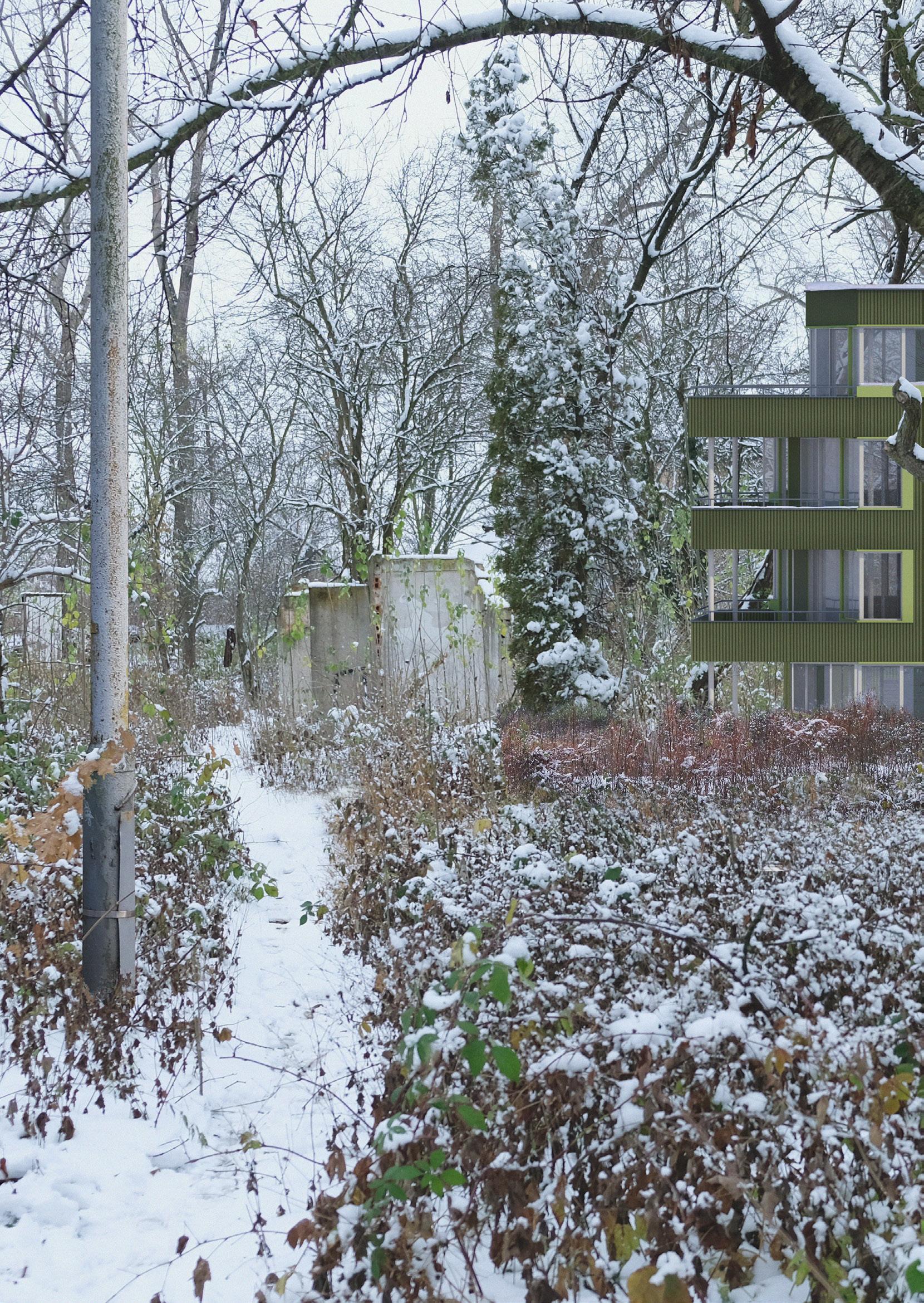 The master’s thesis‘ main topic is housing - searching for a garden city. However, I decided to search for a city in nature instead. I see the wildness of the plot as one of it’s greatest potencials. The ambition of the project was to design a quality housing and keep the current environment we can find on the plot. We are not building on a ‚green field‘, but on a site in the inner periphery of the city that has been forgotten for so long that it has come to life by itself again.