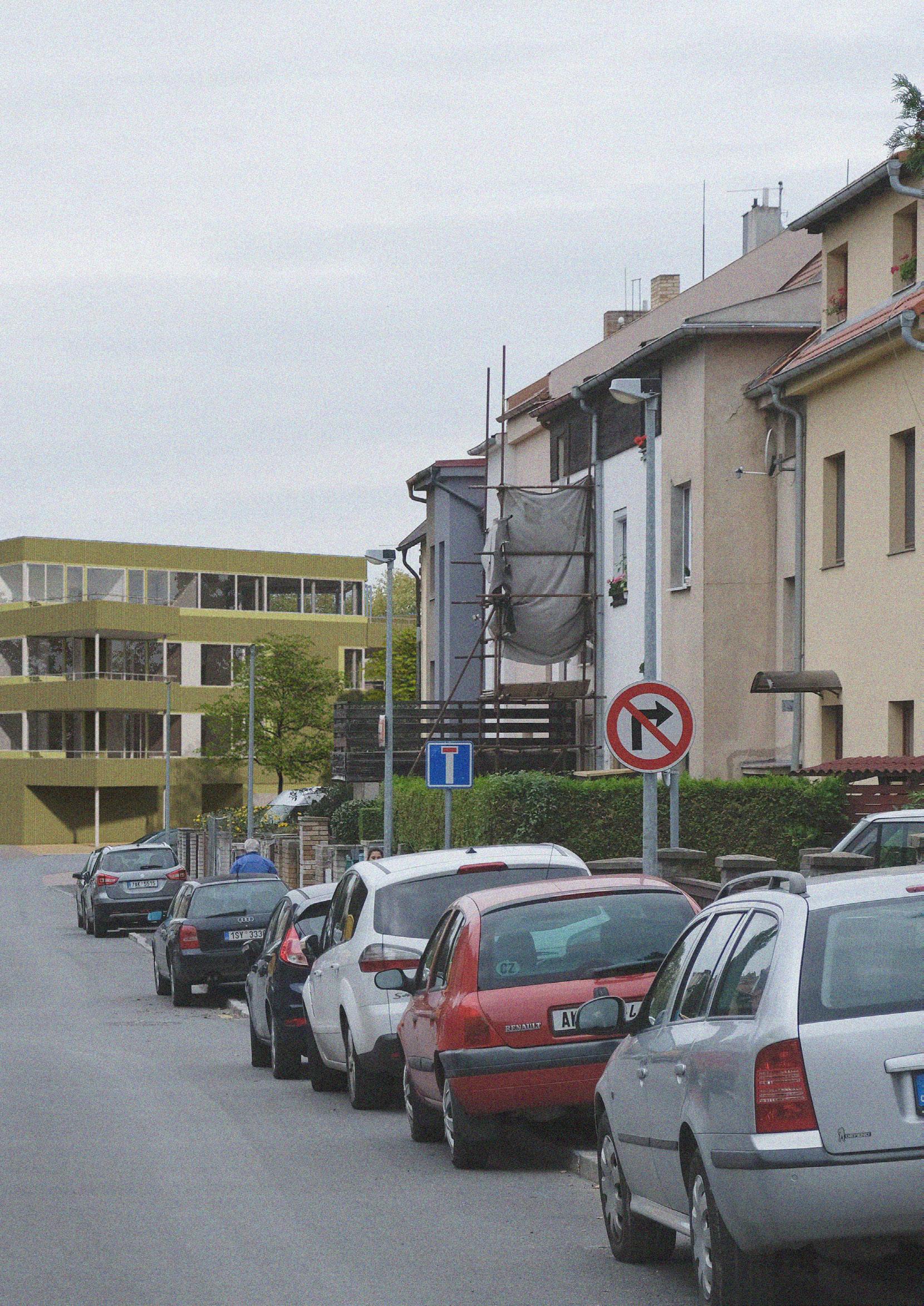 Důležitým bodem návrhu je řešení dopravy v klidu na povrchu. Objem, hustota a hladina zástavby jsou navrženy s ohledem na to, aby bylo možné veškerá parkovací stání umístit přirozeně na povrch bez nutnosti budování nákladných podzemních garáží. V návrhu se vyskytují čtyři druhy parkovacích stání: v soukromých garážích, v parkovacích přístřešcích, na hromadných parkovištích mezi domy a návštěvnická podélná stání na hlavní ulici.