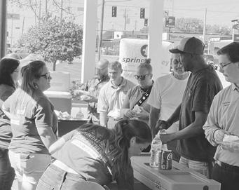 Right: The next Habitat home partner family from Oakland City, enjoyed lunch with the group helping to build her house.