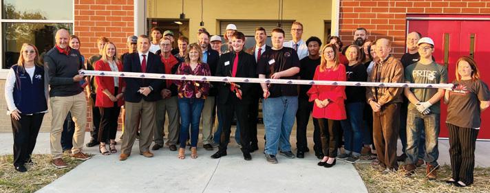 Members of the Chamber of Commerce, school board, educators and other community members held a ribbon cutting for new expansion of the Precision Machining and 4T addition to the high school.