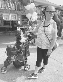 Right: Animal Shelter board president Sharon Werne shows off two little pups looking for a home and gives a shout out to their sponsor.