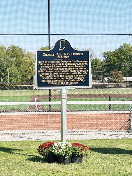 A group of community members including sports and history fans gathered at Gil Hodges Field in Princeton, on October 4th, for the unveiling of an Indiana state historical marker commemorating baseball Hall of Famer Gil Hodges. Even though Hodges grew up in Petersburg, he was born in Princeton, and played American Legion baseball on this very field that was renamed for him in 1970.