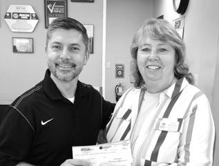 Best One Tire employees contributed to Habitat for Humanity of Gibson County. Presenting the check is Eric Mead, Marketing V. P. at Best One Tire. The money will be used for future homes for Partner Families and will be a tremendous blessing.