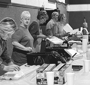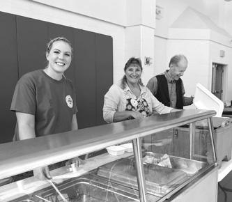 Above: Brandi Kramer, Patty Wildt and Rick Coleman helped serve dinners in the gym.