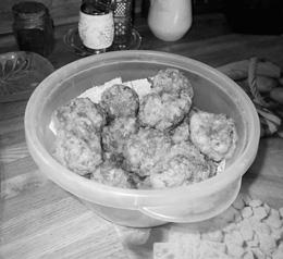 a dose of sausage balls. The grandkids have now gotten into the anticipation and requests as well. They want two things at Grandma’s housesausage balls and Jell-O jigglers - every time. They are easily made ahead with just a few common ingredients and warmed in the microwave minutes before serving.