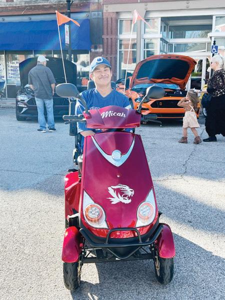At the last car show, members of the club presented Gibson County’s biggest sports fan and local resident, Micah Buhl, with a new motorized scooter. His old one broke and he was getting around town on a bicycle, which was difficult. Micah was so surprised and beyond grateful for their help.