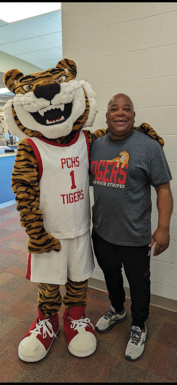 Duke Energy employees, from the Gibson Generating Station, volunteered time for the North Gibson School Corporation to remove old tin siding and install new siding at the football field concession stand. While uncovering the old siding volunteers uncovered a Princeton Tigers art work as well as the old ticket booth.