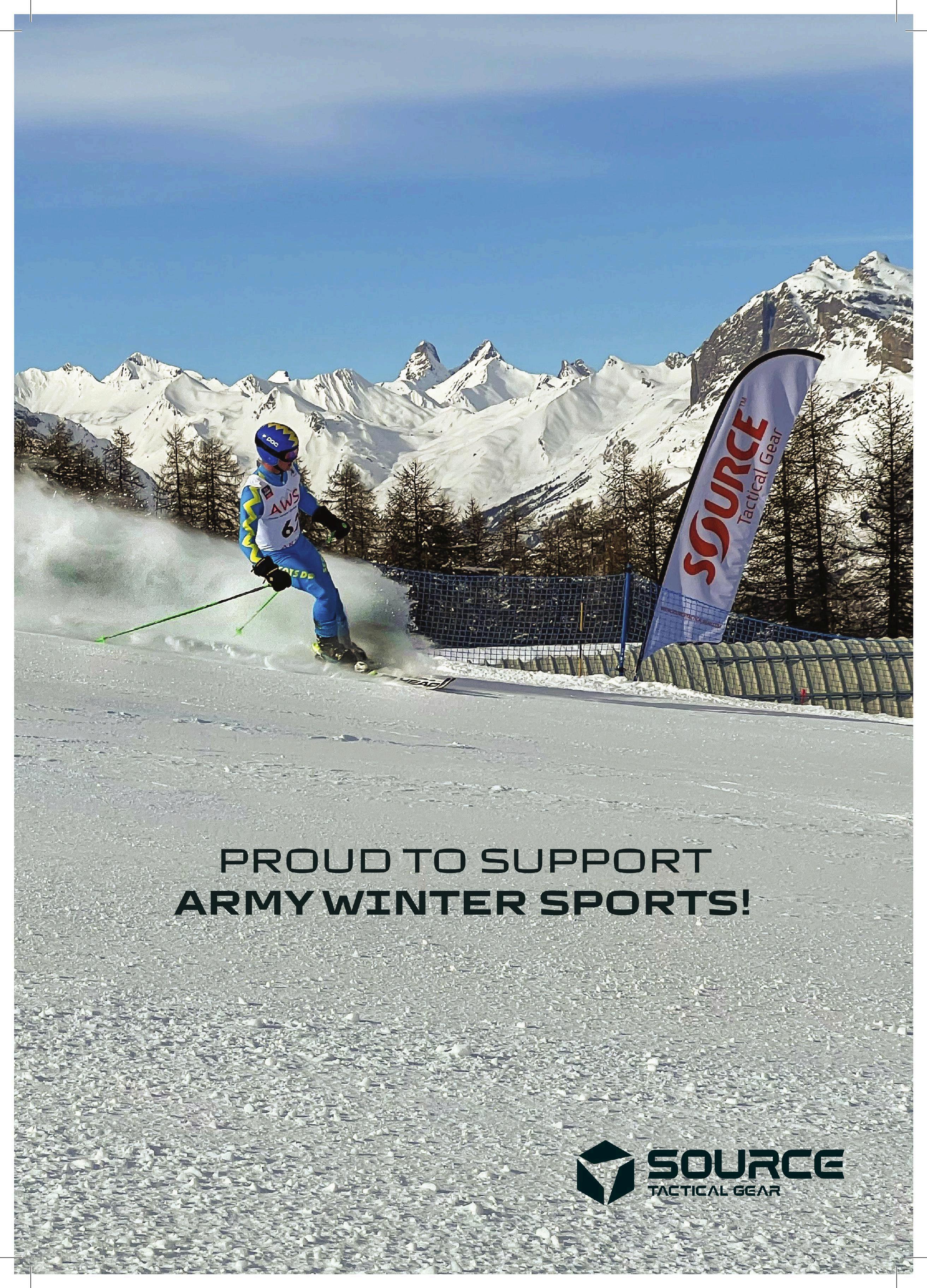 This magazine celebrates all that we work so hard to achieve It is with immense pride that I look forward to this coming winter. This season will mark the 78th year that Army Winter Sports has helped produce enriched, robust soldiers, able to operate close to their personal limits and in physical danger, working closely with colleagues, trusted to plan and operate independently at reach, with significant freedoms delegated to our junior leaders. We pride ourselves on our experience and quality of competition in this unique area. Yet it is only made possible by the amazing work of the AWSA charity, supported by readers’ membership subscriptions and generous sponsorship from across the Army Sports and sponsors family, combining local expertise with the widest reach.