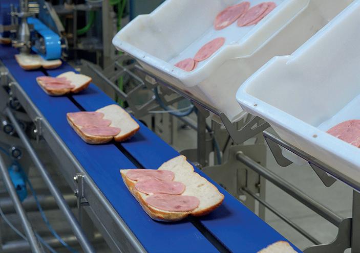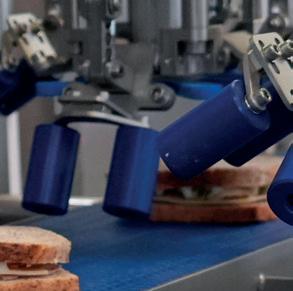 Grote robotics automates base, ingredient, and end product handling throughout the sandwich assembly process.