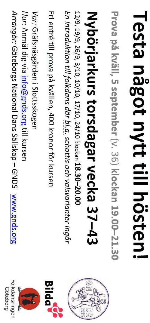 Kommande viktiga datum inom Folkdansringen Göteborg: Ombudsmöte kl 18.30 24 september(Polskedanslaget är värdförening 26 november - (Skjortor och Särkar Poskesnurren värdförening)