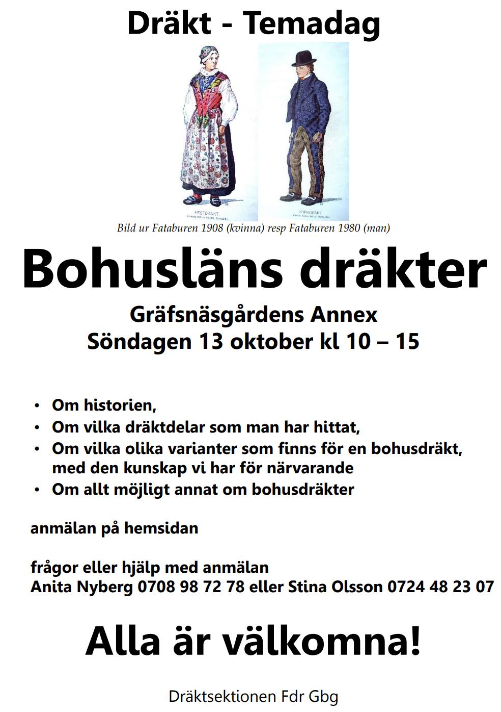 Vår specialitet i dräktbutiken är dräktmaterial till de västsvenska dräkterna, speciellt Bohuslän samt material till dräkter från norra Halland och till Tungedräkten (Västergötland).