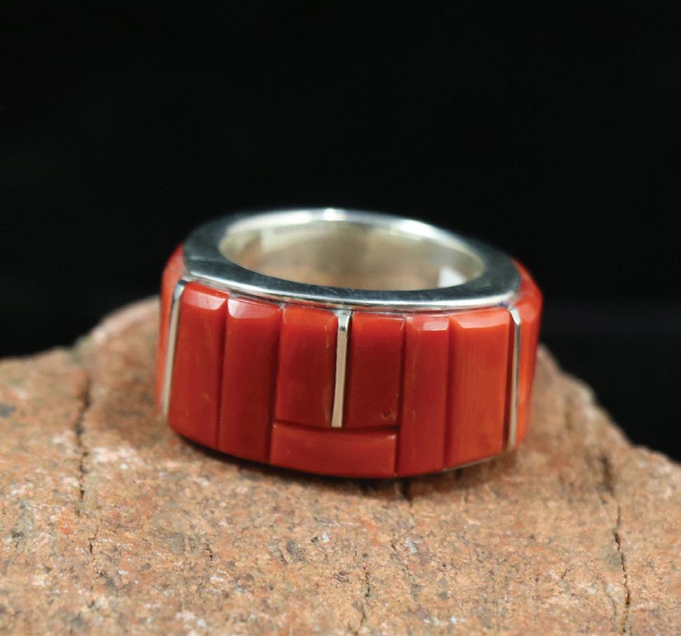 14K Gold Natural Mediterranean Coral Inlay Ring by GL Miller