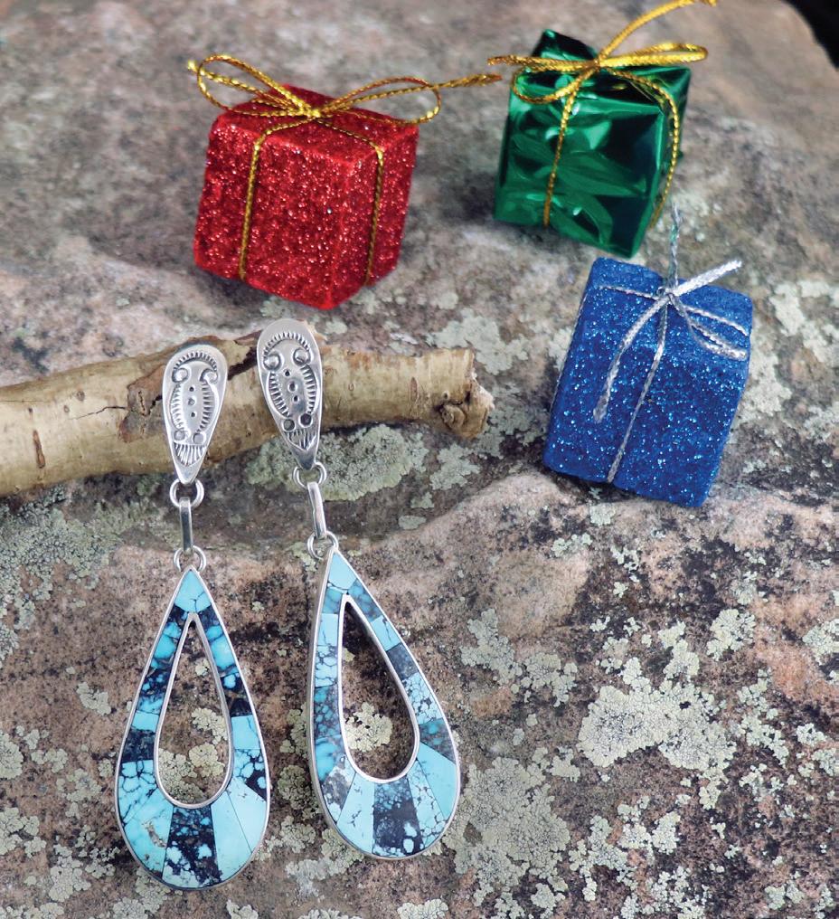 Bisbee Turquoise & Black Jade Lightning Bolt Earrings by Don Supplee