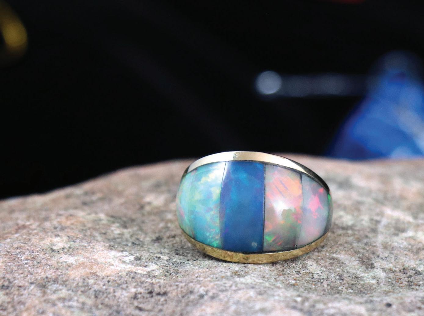 14K Rose Gold, Med Size, Natural Ethiopian Opal, Coral Tips by Roger Wilbur