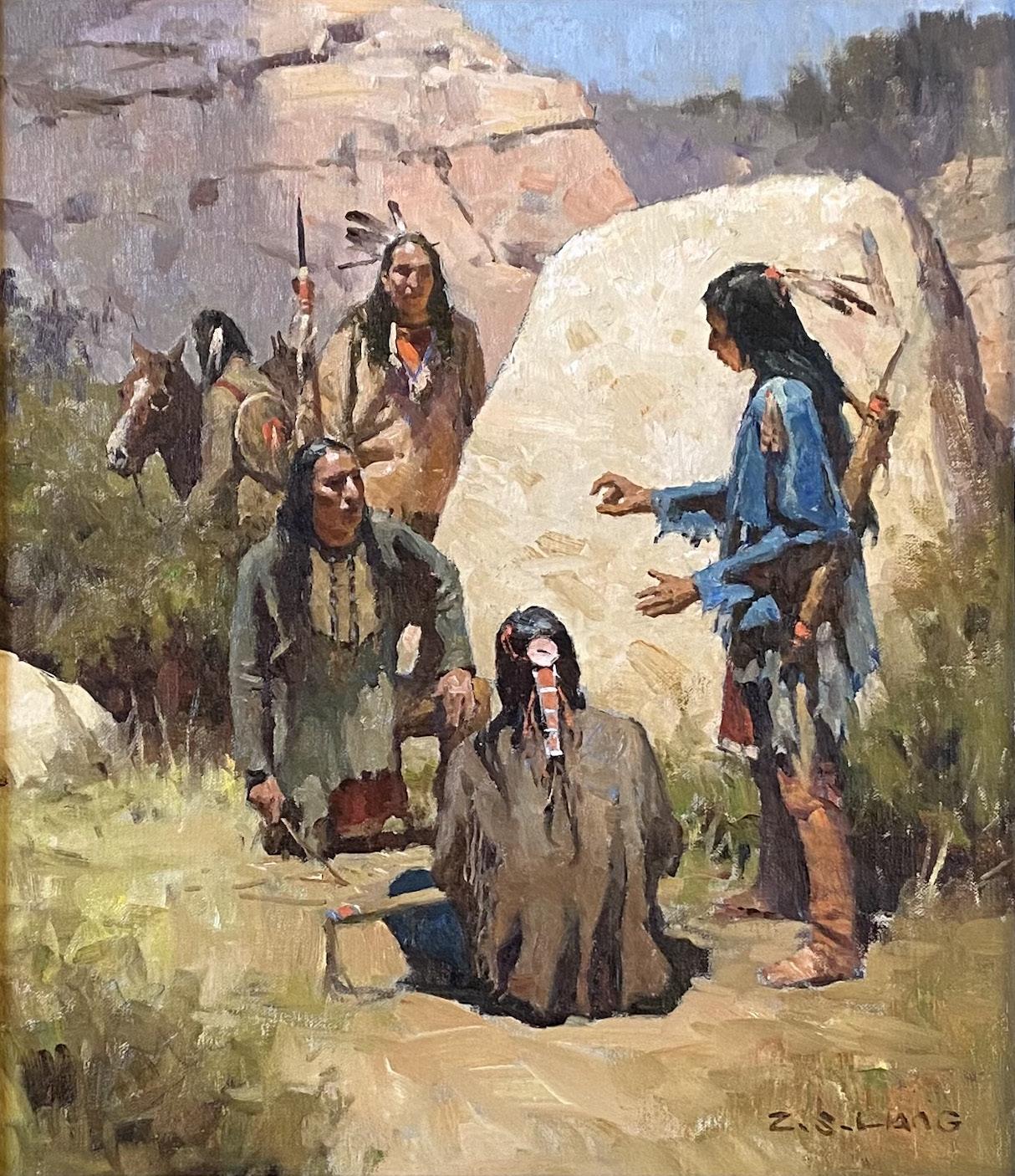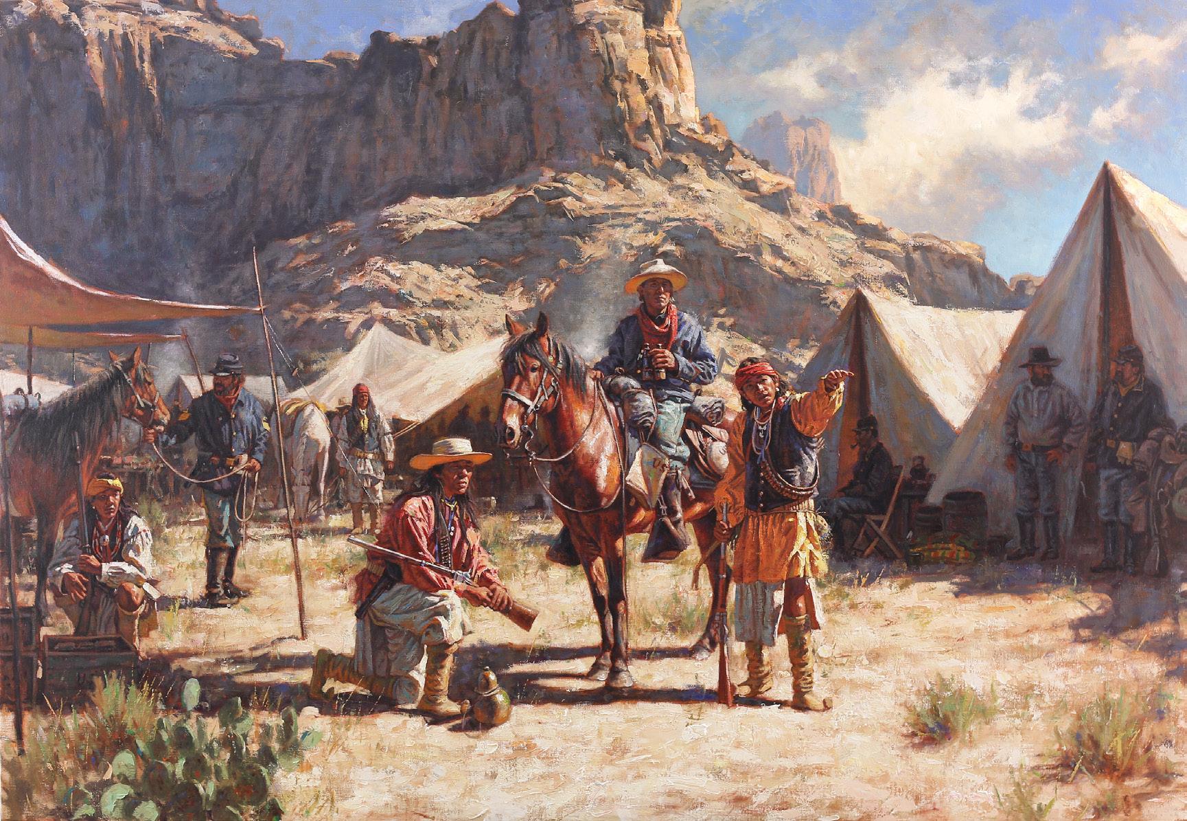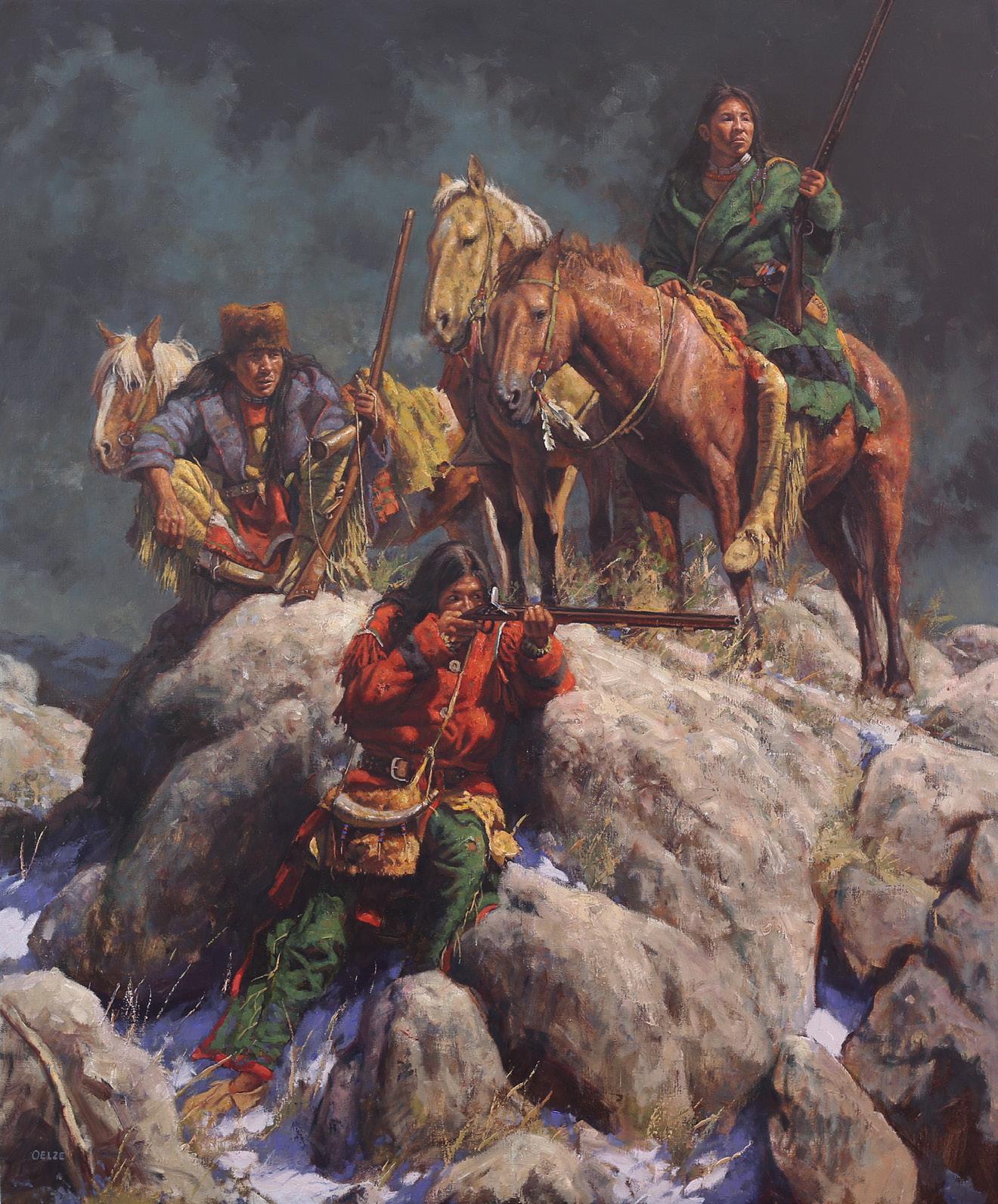 Cheyenne Scouts on Bozeman Trail 16" x 14" Oil