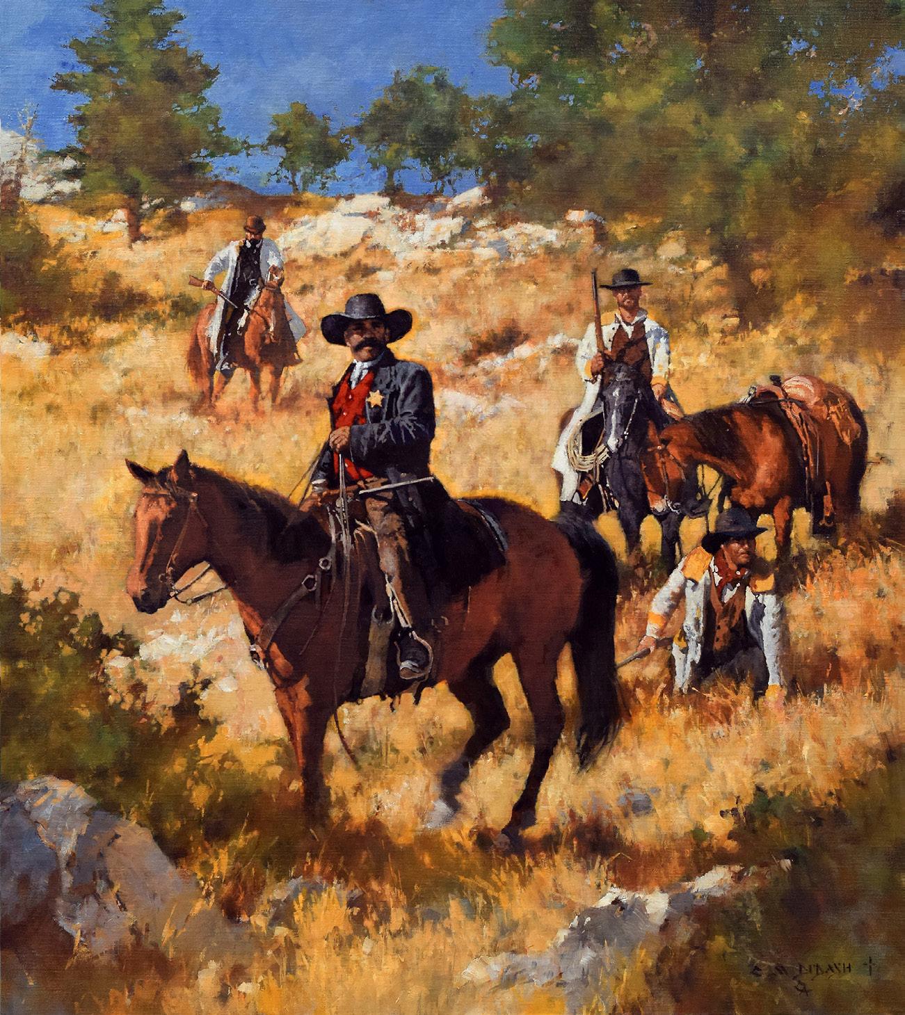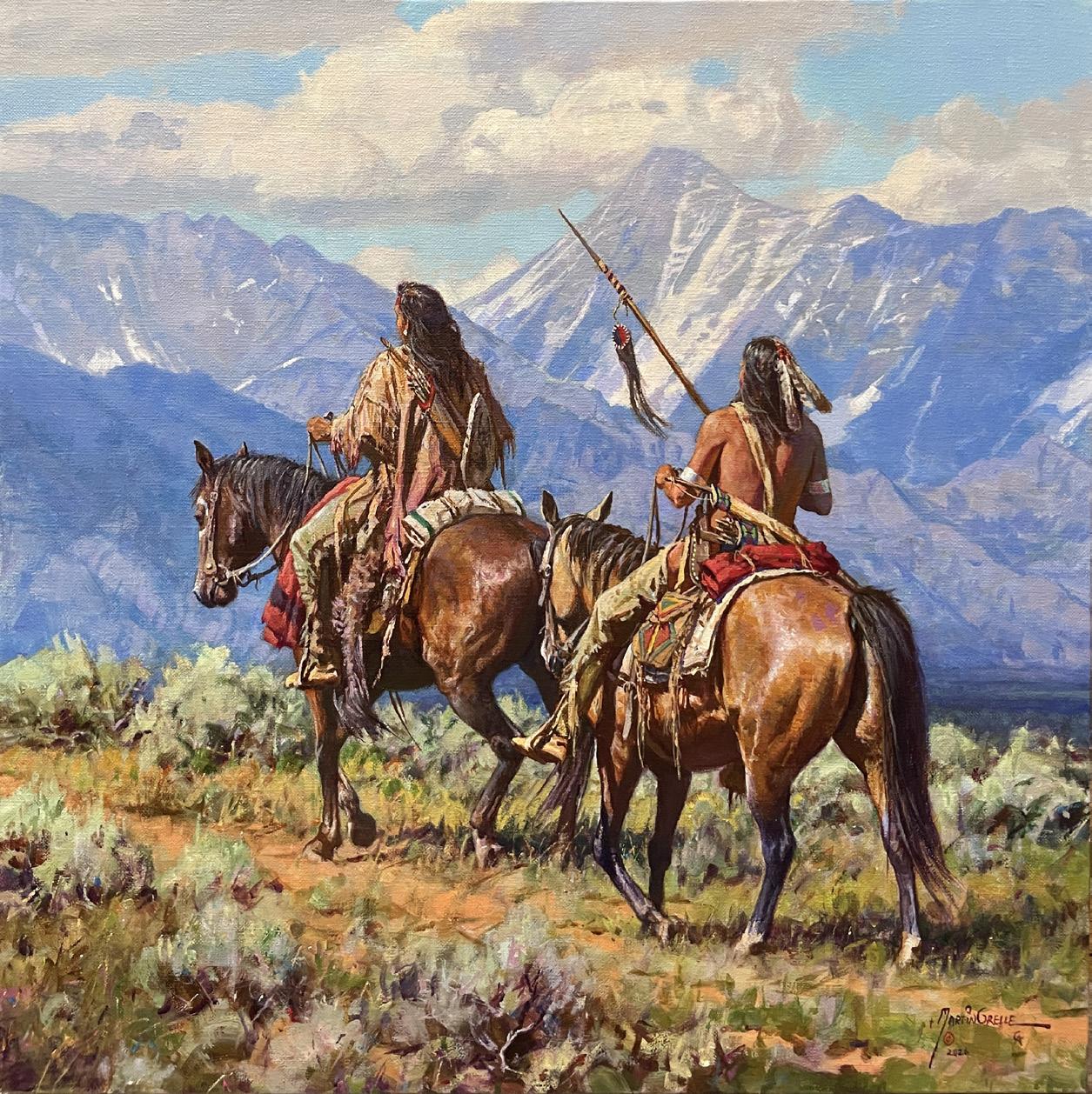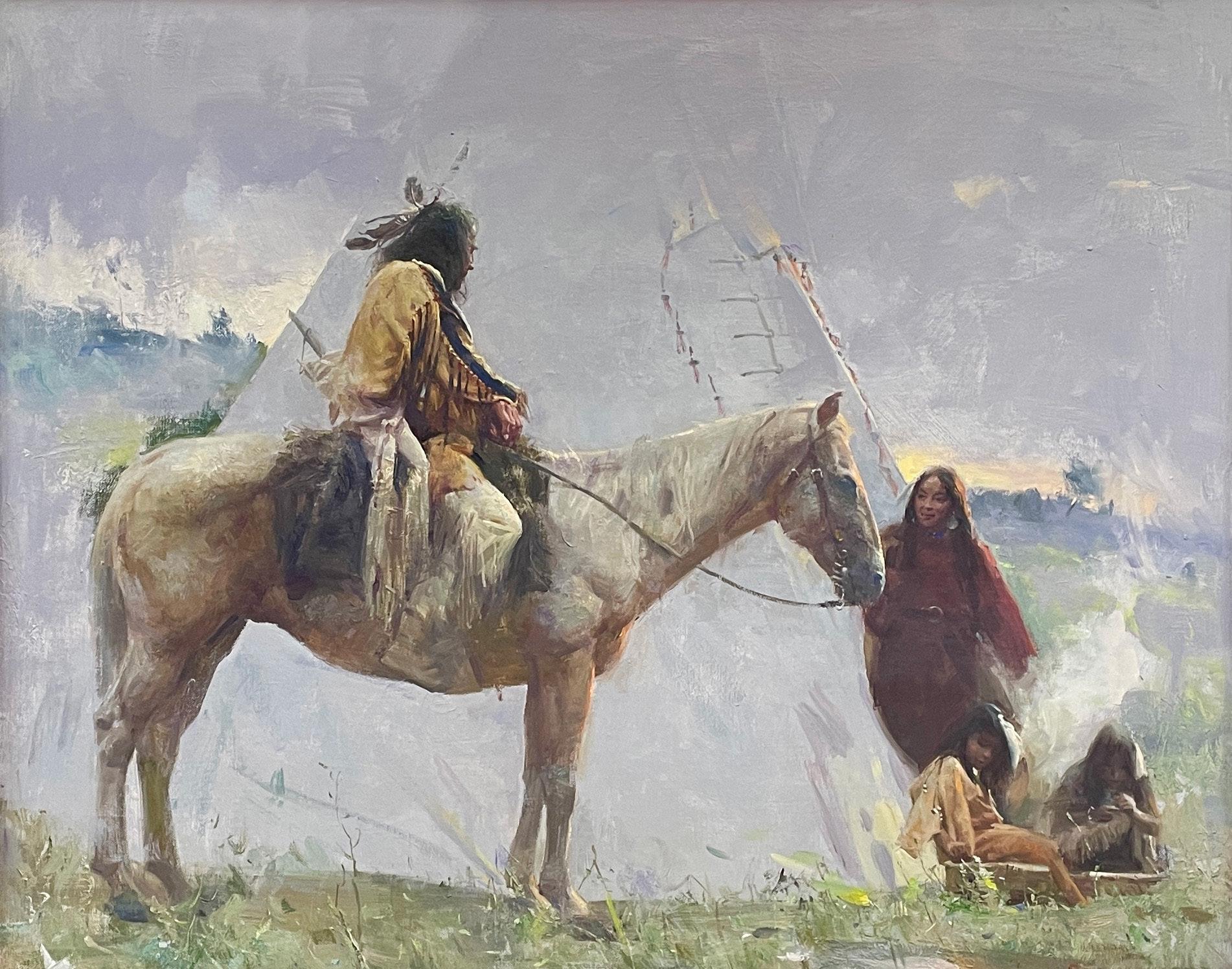 Cheyenne Scouts on Bozeman Trail 16" x 14" Oil