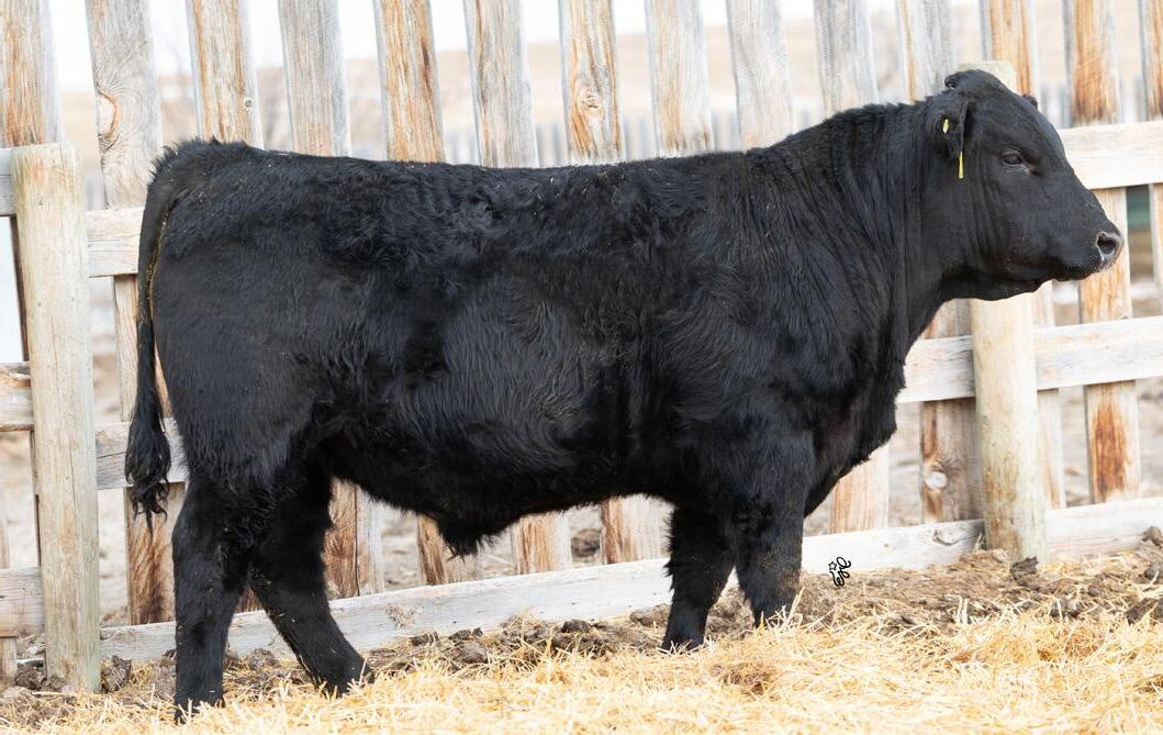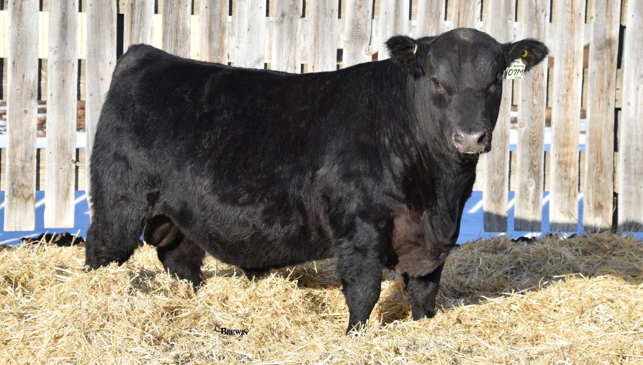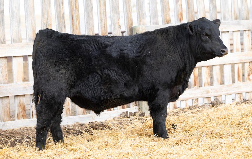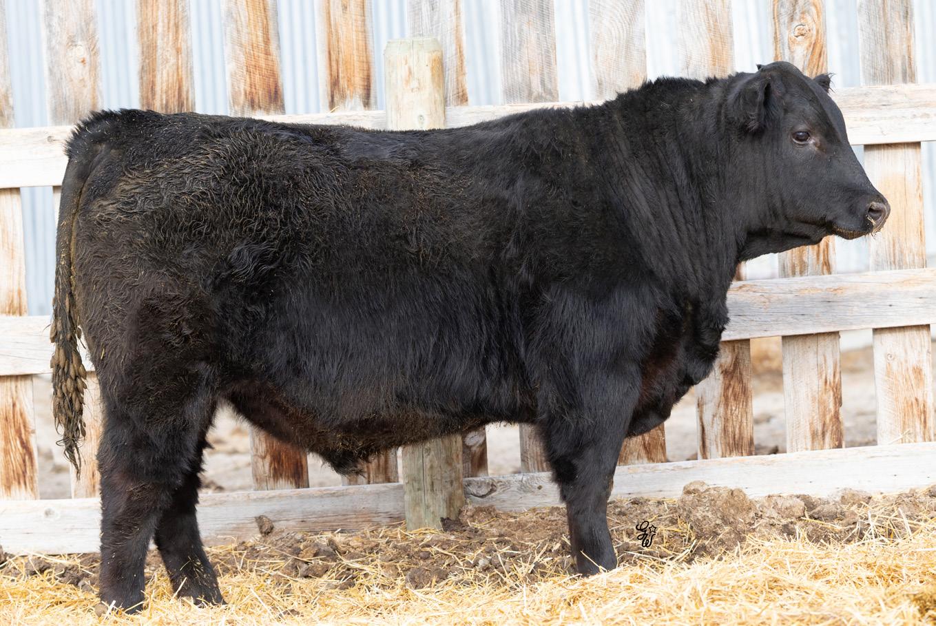 First of 3 bulls from our new walking herd sire Crescent Creek Big Step. He stands on a set of very good feet and legs. Is deep ribbed and thick across his top. His dam is truly amazing, an ideal-looking Angus cow. These qualities have been passed on to his offspring. A true herd boosting and improving herd sire.
