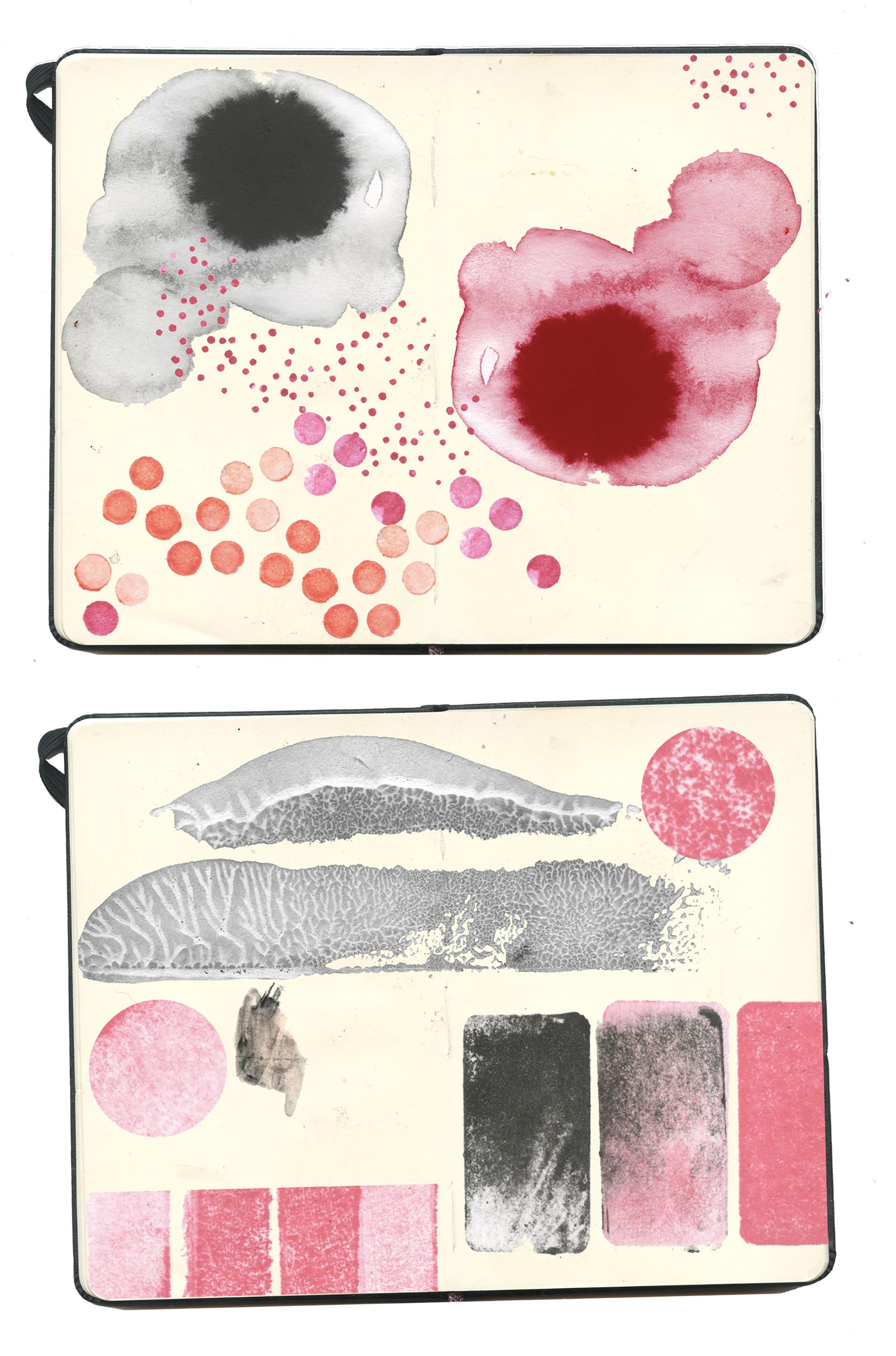 Sketch book pages looking at a wider range of skin tones that are represented in existing material centred around birth communication.