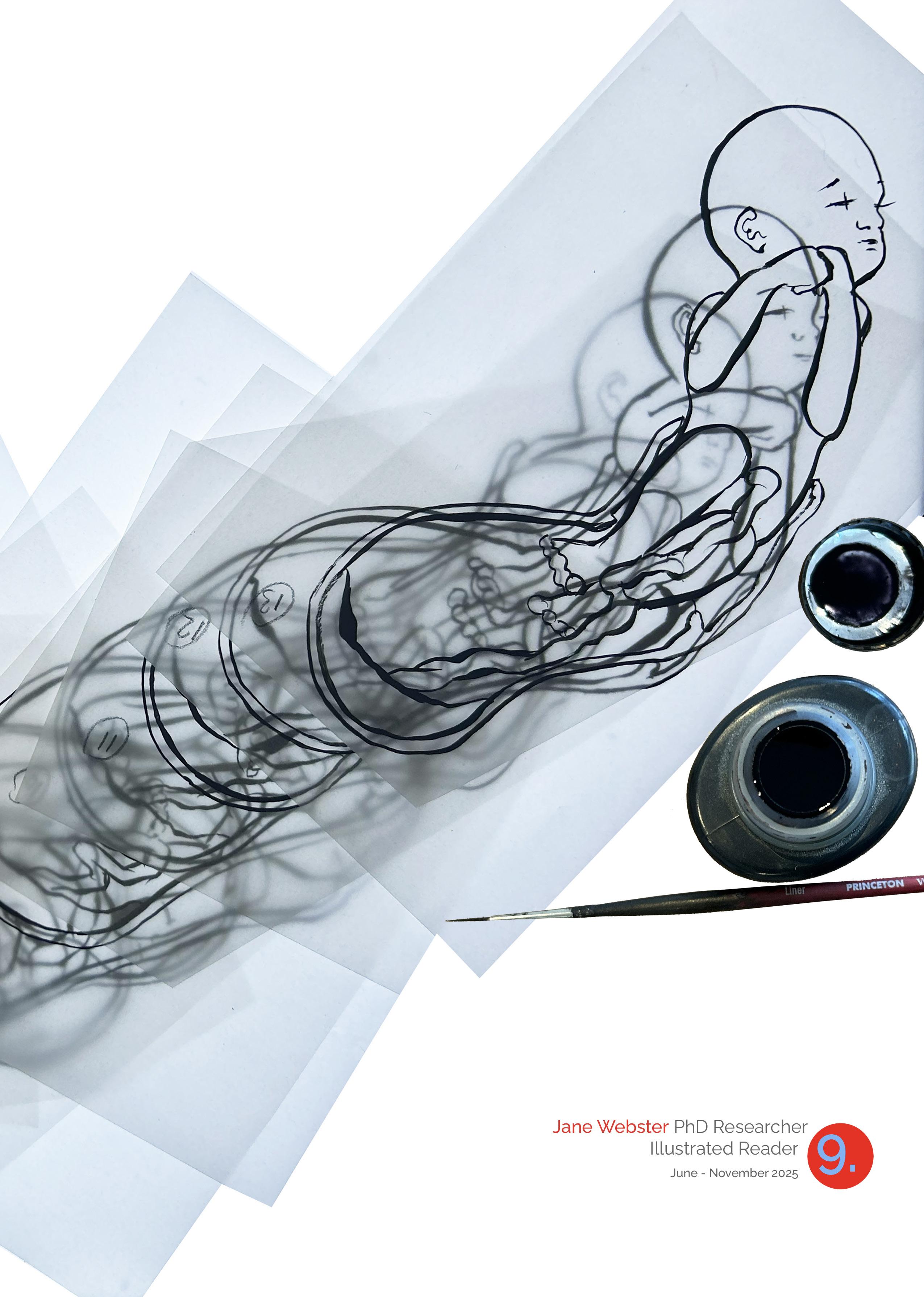 In terms of visual work, following the conversations I have had with Susana and Shalayna, brown women are underrepresented in much literature, and modest clothing is also missing from the visual representation of the women the Royal London supports. I have been developing my time-based skills and have been working on the representation of a pregnancy from 12 weeks to full term- this is obviously not new knowledge. I started with 18 key-frame drawings as seen on pages 20 and 21. I then drew frame by frame, with the foetus bouncing through week by week, to 100-plus frames of the head being born. This stage of birth is usually a slow process, especially for first-time mothers, and is different for every birth. Once the shoulders are born, the baby seems to shoot out with the waters if they haven’t broken or been broken.,