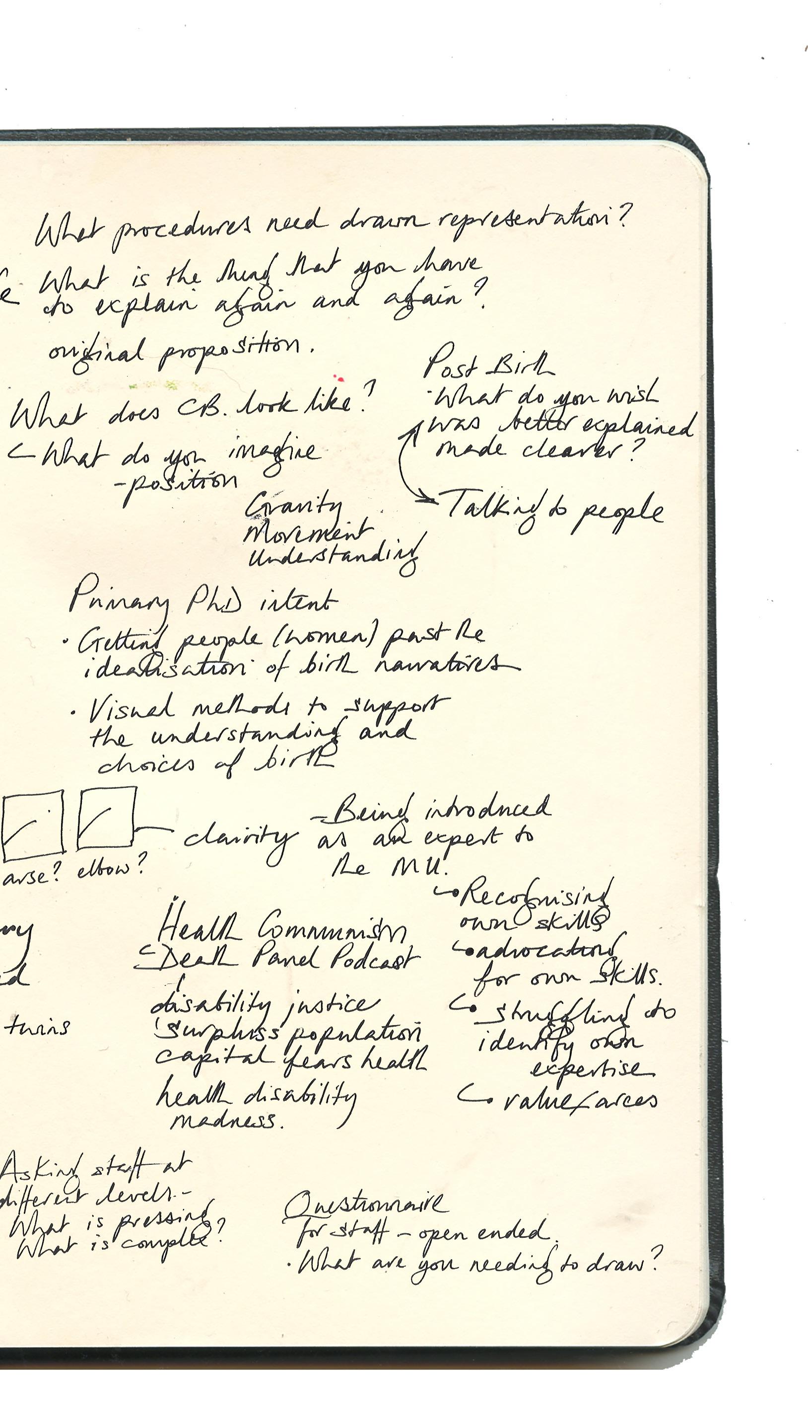 It’s how can confidence and choice be encouraged in the experience of birthing mothers through illustration animation practice? So, I’ve narrowed that down to first-time birthing mothers. Because I think otherwise, it’s so vast.