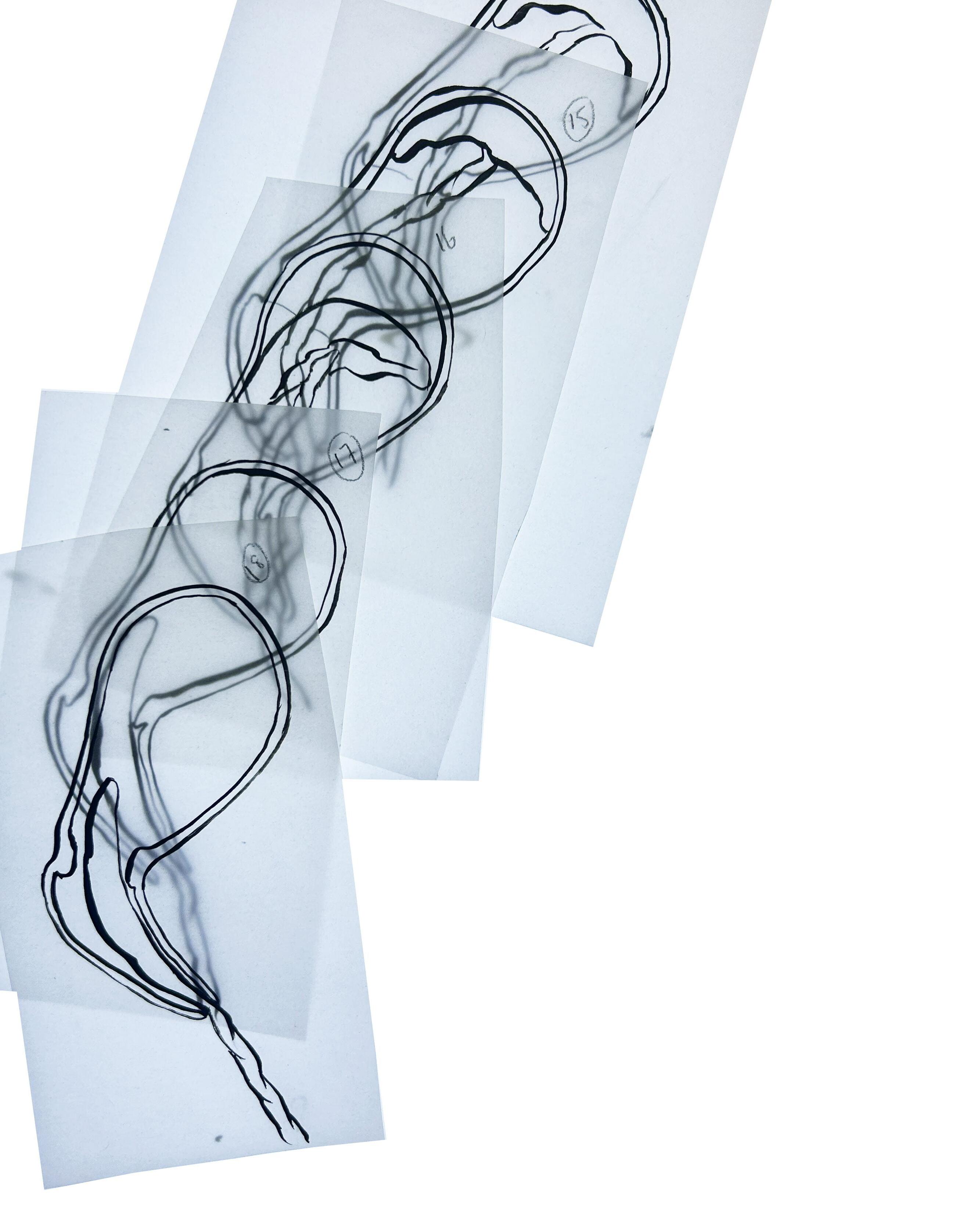 Original 18 Key Frame drawings to base the animated sequence of the cervix softening and opening.